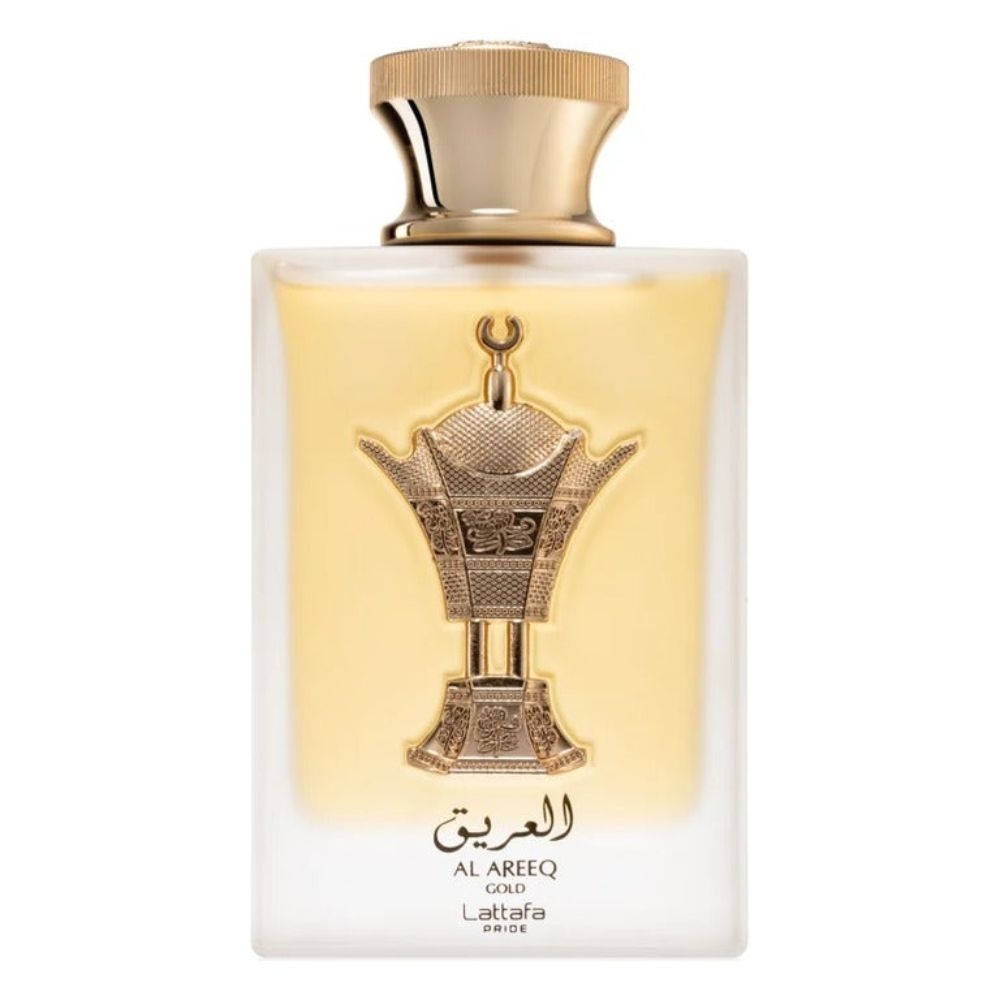 Lattafa Pride Al Areeq Gold é um perfume que se orgulha da intimidade de um vibrante solado de açafrão, com amargor que abunda na pele ao fundo e uma doçura esfumaçada que se aproxima, revelando chá preto numa composição diretamente dançante, com chantilly gourmet de baunilha, engarrafar a fragrância em uma linha gourmand.<br /> <br /> Notas de Topo: Açafrão e Chá Preto<br /> <br /> Notas de Coração: Incenso, Couro e Camurça<br /> <br /> Notas de Fundo: Madeira de Âmbar, Baunilha e Almíscar