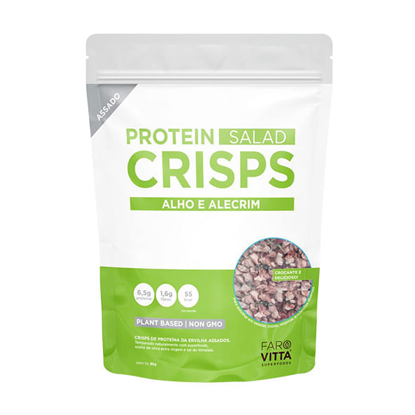 A Protein crisps alho e alecrim, da Monama, 85g, é um crisp salgado proteico e low carb, feito com proteína de ervilha, temperado com superfoods (alho e alecrim), azeite de oliva extra virgem e sal do himalaia. Opção prática que fornece 6,5g de proteínas na porção, sem ingredientes de origem animal ou aditivos artificiais.