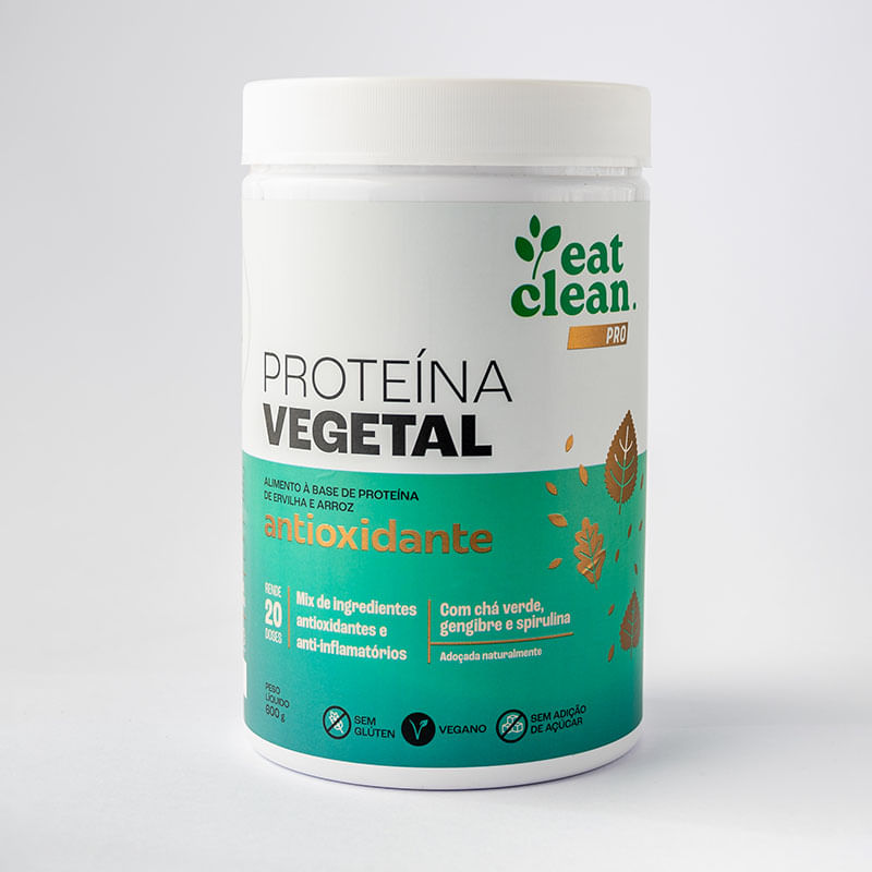 <h2><strong>Proteína Vegetal Antioxidante Eat Clean 600g</strong></h2> <p><strong>Proteína Vegetal Antioxidante</strong>, da marca <strong>Eat Clean</strong>, é um suplemento proteico, com sabor de abacaxi, composto de proteína de ervilha e proteína de arroz que combinadas oferecem um completo perfil de aminoácidos e também é enriquecida com todas as vitaminas do Complexo B, incluindo a Vitamina B12.</p> <p>Além de complementar o aporte proteico diário de forma fácil e prática, contém um mix de ingredientes, como a spirulina, chá verde e gengibre que possuem ação antioxidante e anti-inflamatória. Pode ser consumida batida tanto complementando uma refeição principal, como o café da manhã, quanto em refeições intermediárias, como lanches e ceia.</p> <h2><strong>Sugestão de consumo: </strong></h2> <p>Misturar 30g (2 Scoops) em 350ml de água até diluir totalmente.</p> <h2><strong> Motivos para escolher o produto: </strong></h2> <ul> <li style="list-style-type: disc;">Não contém glúten</li> <li>Fornece 24g de proteína na porção</li> <li style="list-style-type: disc;">Vegano</li> <li style="list-style-type: disc;">Sem açúcar</li> </ul> <h2><strong>Sobre a marca:</strong></h2> <p>A <strong>Eat Clean</strong> começou apenas com uma loja no ramo alimentício, mas atualmente ela se expandiu e se tornou uma das marcas mais reconhecidas, por possuir o objetivo de produzir e vender produtos naturais, saudáveis, sem rótulos enganadores. Que possuam muito amor, com gosto de comida caseira e saborosa, contribuindo para a saœde das pessoas, além de sempre respeitarem a natureza.</p>