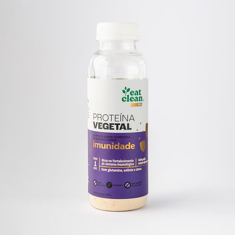 <h2><strong>Proteina Vegetal Imunidade Eat Clean 30g</strong></h2> <p><strong>Proteína Vegetal Imunidade</strong>, da marca <strong>Eat Clean</strong>, é um suplemento proteico, dose única com sabor baunilha cítrica, composto de proteína de ervilha e proteína do arroz que combinadas oferecem um completo perfil de aminoácidos e também é enriquecida com todas as vitaminas do Complexo B, incluindo a Vitamina B12. Além de complementar o aporte proteico diário de forma fácil, prática, contém uma combinação de glutamina, selênio e zinco, nutrientes que auxiliam na modulação do sistema imunológico. Pode ser consumida batida tanto complementando uma refeição principal, como o café da manhã, quanto em refeições intermediárias, como lanches, pré e pós-treino, e ceia. </p> <p> </p> <h2><strong>Sugestão de consumo: </strong></h2> <p>Adicione 300ml de água gelada ou com a bebida de sua preferência.</p> <h2><strong> Motivos para escolher o produto: </strong></h2> <ul> <li style="list-style-type: disc;">Não contém glúten</li> <li style="list-style-type: disc;">Praticidade</li> <li>Fornece 24g de proteína na porção</li> <li style="list-style-type: disc;">Vegano</li> <li style="list-style-type: disc;">Sem açúcar</li> </ul> <h2><strong>Sobre a marca:</strong></h2> <p>A <strong>Eat Clean</strong> começou apenas com uma loja no ramo alimentício, mas atualmente ela se expandiu e se tornou uma das marcas mais reconhecidas, por possuir o objetivo de produzir e vender produtos naturais, saudáveis, sem rótulos enganadores. Que possuam muito amor, com gosto de comida caseira e saborosa, contribuindo para a saœde das pessoas, além de sempre respeitarem a natureza.</p>