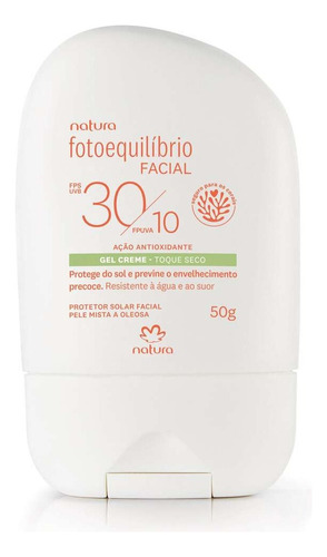 • Para peles mistas e oleosas. • Controle de oleosidade da pele por até 8h. • Textura leve gel creme com toque seco. • Fácil de espalhar e de rápida absorção. • Não pegajoso, oleoso ou gorduroso. • Produto vegano e sem testes em animais. • Tampa giratória fácil de abrir e fechar. Praticidade garantida para os dias ao sol. • Frascos 100% plástico verde. • Resistente ao suor, água doce, água salgada e água clorada da piscina com tecnologia da Biodiversidade Amazônica Natura. • Seguro para os corais*. *Fórmula segura para os corais porque não contém Oxybenzona, Octinoxate e Octocrileno.