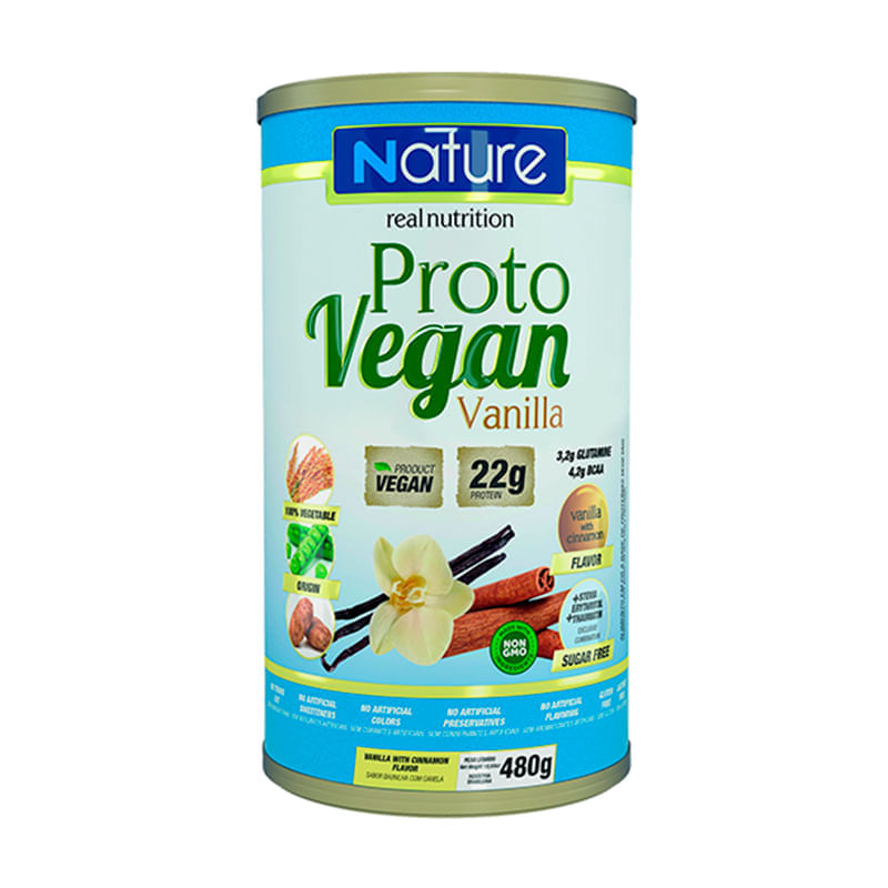 <p>Informações técnicas do produto:<br>O Proto vegan baunilha e canela, da Nutrata, combina a proteína da ervilha, da batata e do arroz, fontes vegetais de alta qualidade, proporcionando uma proteína vegana com sabor e cremosidade única. <br>Cada porção fornece 22g de proteína combinado com o delicioso sabor de baunilha e canela.<br>Sobre os ingredientes:<br>Proteína isolada da ervilha: fonte de aminoácidos essenciais, aqueles que o corpo não produz e, por isso, precisam ser adquiridos através da alimentação inclusive lisina e arginina.<br>Proteína concentrada do arroz: considerada uma proteína completa por possuir grande quantidade de aminoácidos essenciais. Facilmente digerida pelo organismo.<br>Recomendação de uso: <br>Diluia 30g (03 colheres dosadoras) em 300 ml de água.<br>Consuma de 1 a 2 porções ao dia ou conforme orientação de nutricionista ou médico.<br>Por que escolher esse produto?<br>22g de proteína na porção<br>Produto 100% natural<br>Livre de corantes artificiais<br>Livre de conservantes<br>Livre de gordura trans<br>Sem aromatizantes artificiais<br>Sem adoçantes artificiais<br>Sem glúten<br>Sem açúcar<br>Vegetariano<br>Vegano<br>Sobre a marca: <br>A Nutrata com sua experiência de mais de 20 anos gera confiança e credibilidade com a qualidade dos seus produtos. Seu objetivo é atingir todos os tipos de público que buscam uma qualidade de vida melhor ou que necessitam de produtos específicos e de alta performance.</p>