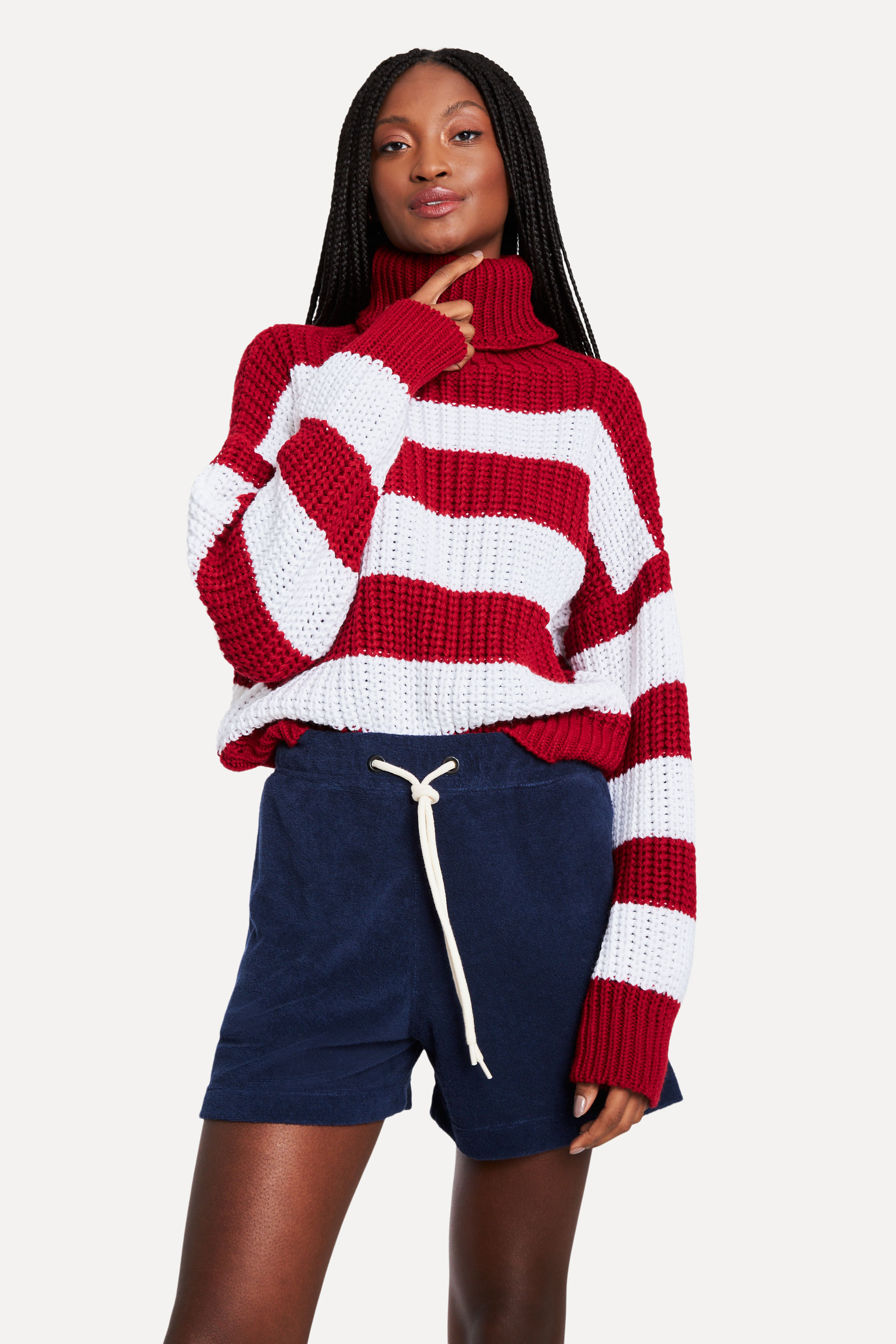 Mais cor para as suas produções! A blusa de tricot oversized listrado tem mangas com pregas, ponto clássico e modelagem diferenciada. Fácil de combinar, você pode usar a peça sozinha ou criando sobreposições com básicos como o jeans para um look casual e chic.
