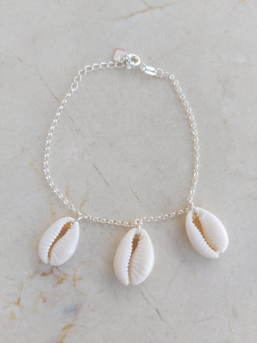 Pulseira prata 925<br /> <br /> Comprimento 20 cm<br /> <br /> 3 Buzios naturais