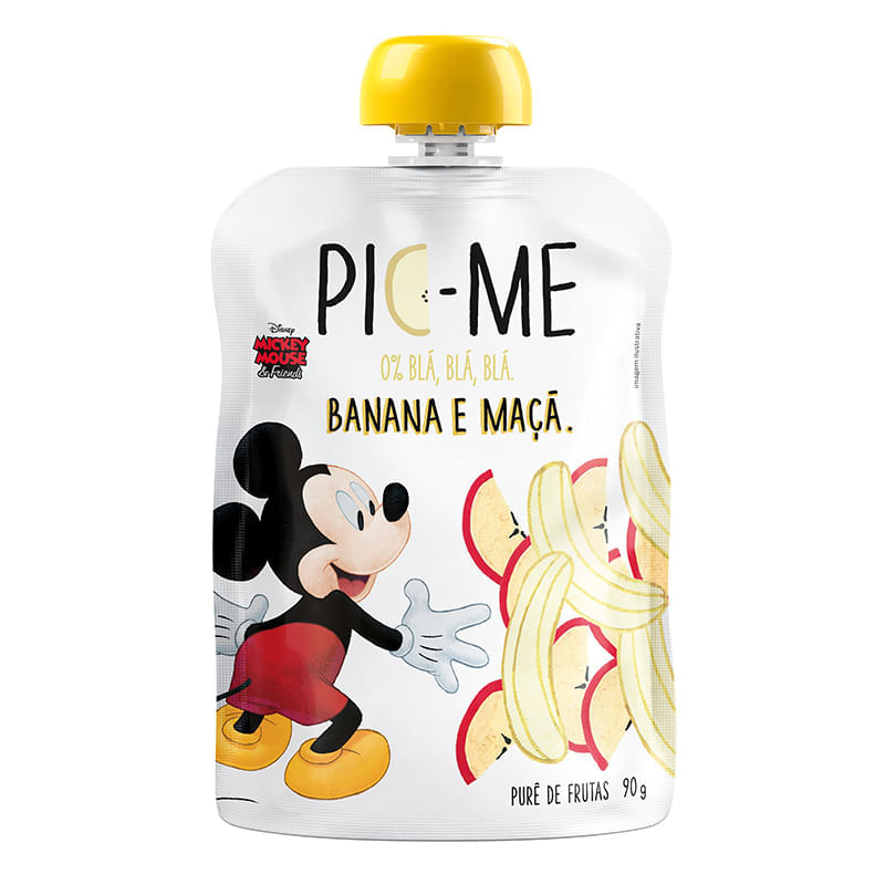 O Squeeze de Frutas Disney Banana e Maçã, da Pic-me, 90g, é produzido com ingredientes 100% naturais com a adição de uma gota de limão para realçar o sabor da fruta. Isento de açúcar, tem uma alta quantidade de fibras alimentares, é um produto vegano e sem glúten, ideal para quem leva um estilo de vida saudável.