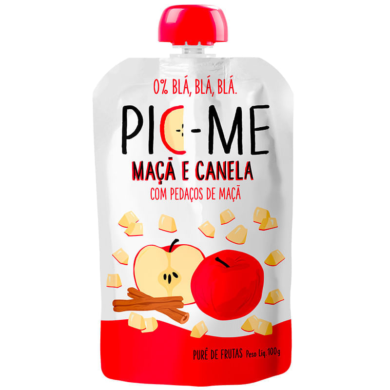 O Purê de maçã e canela com pedaços de maçã, da Pic-me, 100g, é formulado apenas com ingredientes naturais, sendo eles a maçã, limão e canela. É uma opção prática, sem aditivos químicos, livre de glúten e alergênicos, podendo ser consumida por todos os públicos.