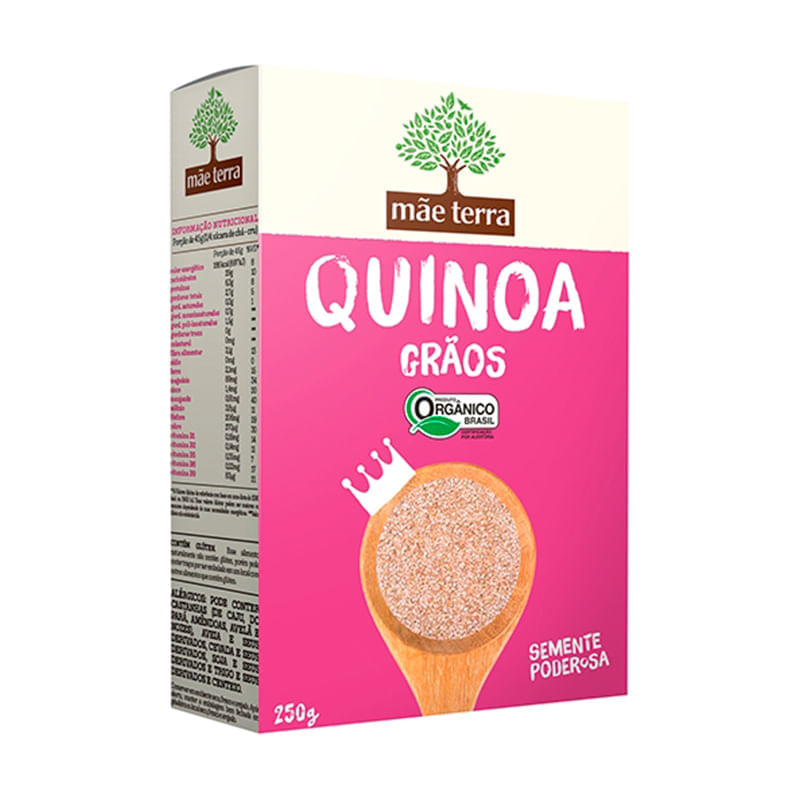 <p>A <strong>Quinoa Grão Orgânica Mãe Terra 250g</strong>, é uma excelente opção de grão para ser consumido por todos, inclusive veganos por ser excelente fonte de proteínas vegetais. A quinoa também é uma ótima pedida para os celíacos e pessoas sensíveis ao glúten, pois ela não o contém. A quinoa é muito nutritiva, além de possuir sabor neutro e muito suave, combinando muito bem com diversas preparações!</p> Sugestão de consumo: <p>A Quinoa Orgânica, da Mãe Terra pode ser cozida seguindo o preparo idêntico ao do arroz, com alho, cebola ou o que preferir. Após o cozimento ela pode ser consumida pura ou adicionada em saladas e diversas preparações.</p> Motivos para escolher o produto: <ul> <li> <p>Orgânica</p> </li> <li> <p>Excelente fonte de proteínas</p> </li> <li> <p>Livre de glúten</p> </li> <li> <p>100% natural</p> </li> <li> <p>Muito versátil</p> </li> <li> <p>Sabor suave</p> </li> <li> <p>Vegano</p> </li> </ul> Sobre a marca: <p>A <strong>Mãe Terra</strong> acredita que uma alimentação saudável, é composta por alimentos mais naturais e integrais, por isso os produtos são feitos com ingredientes que fazem bem para o corpo, não tendo adição de ingredientes artificiais. Atualmente é líder no segmento de alimentos naturais e orgânicos no Brasil.</p>