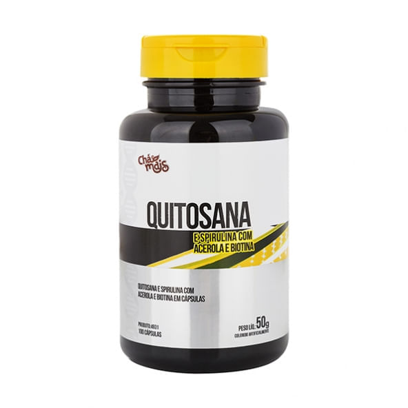 Informações técnicas do produto:<br> A Quitosana da Chá Mais é um suplemento alimentar à base de quitosana, uma fibra natural derivada da quitina, obtida a partir de exoesqueletos de crustáceos. Possui adição de acerola, biotina (uma vitamina do complexo B) e spirulina, uma microalga rica em nutrientes como vitaminas, minerais, ácidos graxos poli-insaturados, aminoácidos e antioxidantes.<br> <br> Recomendação de consumo:<br> Consumir sete cápsulas de Quitosana com Spirulina, Acerola e Biotina ao dia, juntamente com líquidos.<br> <br> Por que escolher esse produto?:<br> Fonte de fibras<br> Sem glúten<br> Fornece 100% das recomendações diárias de vitamina C<br> Livre de adoçantes artificiais<br> Zero sódio<br> Fornece 100% das recomendações diárias de biotina, vitamina do complexo B.