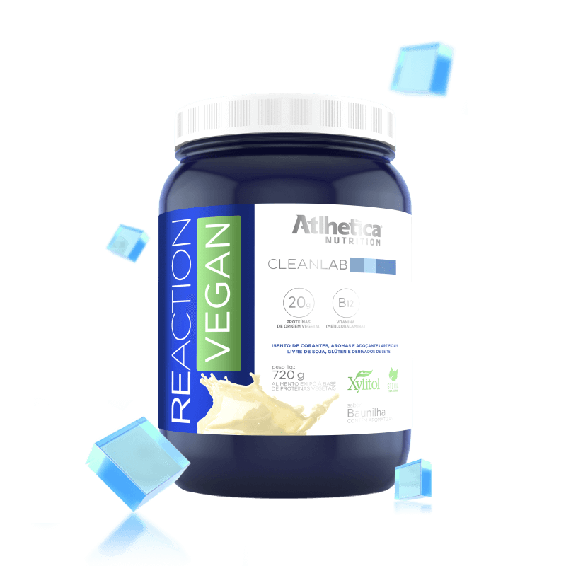 <p>A <strong>Reaction Vegan Baunilha Atlhetica 720g</strong>, é um shake proteico no sabor baunilha, destinado ao indivíduo que não consome proteína animal. Uma opção saudável, 100% natural e rica em proteínas de origem vegetal, com um excelente perfil de aminoácidos.</p> Sugestão de consumo: <p>Adicionar 1 dosador cheio (36 gramas) em 250 ml de água mineral e bater no liquidificador.</p> Motivos para escolher o produto: <ul> <li> <p>Produto vegano</p> </li> <li> <p>Sem adição de açúcares</p> </li> <li> <p>Não contém aromatizantes artificiais</p> </li> <li> <p>Não contém Glúten</p> </li> <li> <p>Livre de edulcorantes artificiais</p> </li> <li> <p>Isento de corantes artificiais</p> </li> <li> <p>Não contém soja</p> </li> </ul> Sobre a marca: <p>A <strong>Atlhetica</strong>, é uma empresa no qual os produtos são desenvolvidos pela ADS Laboratório Nutricional, que produz suplementos alimentares inovadores com alta qualidade e tecnologia avançada, é considerada a maior indústria de suplementos alimentares do Brasil. Os produtos são fabricados seguindo as normas estabelecidas pela ANVISA e pelas Boas Práticas de Fabricação, proporcionando a qualidade, bem-estar e eficácia.</p>