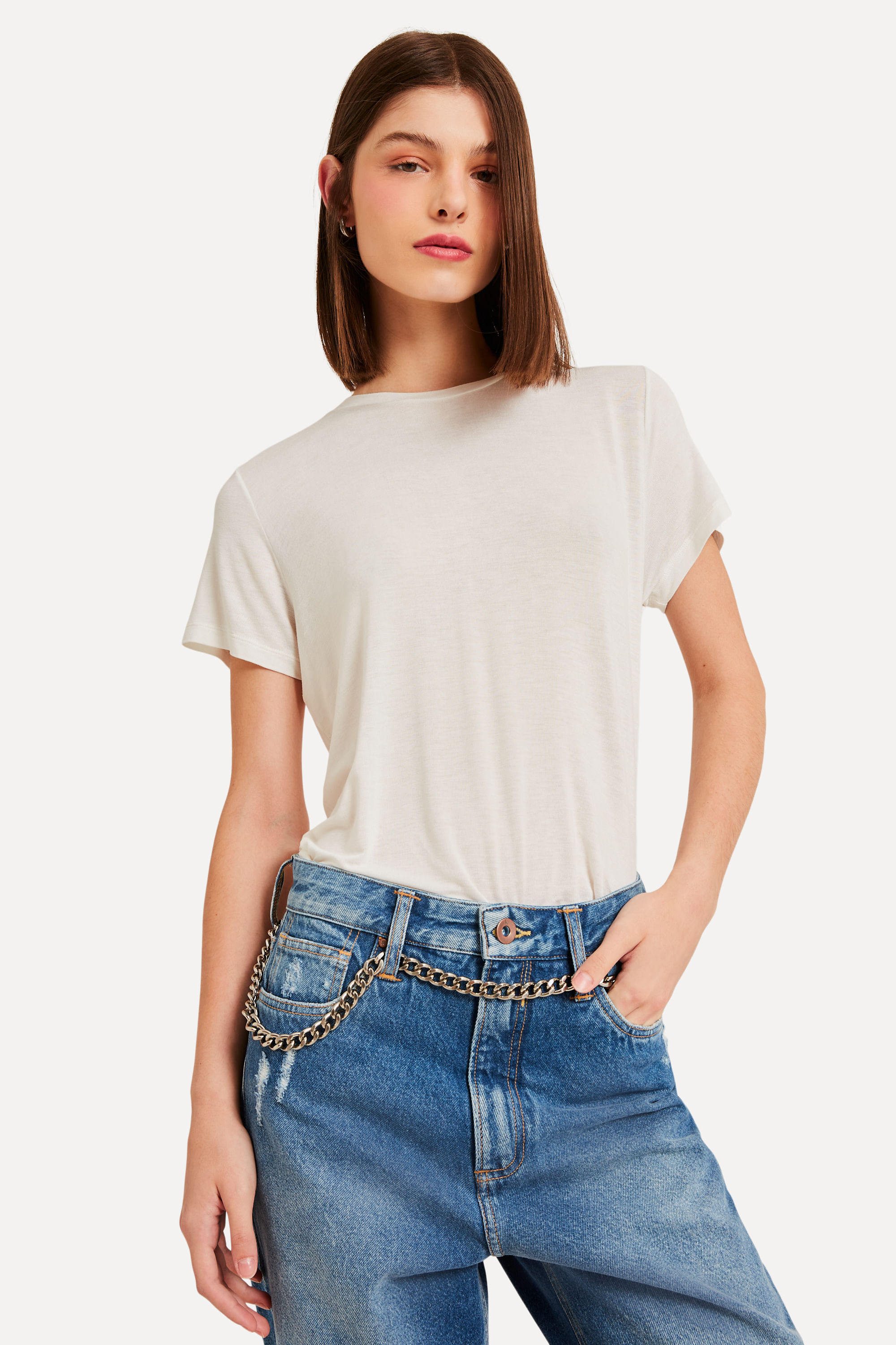 A T-Shirt Soft da Reversa é uma camiseta super básica e versátil que vai te acompanhar em todas as ocasiões. Feita em malha mais sequinha, proporciona um caimento perfeito ao corpo. Seu tecido macio e confortável garante um toque suave na pele. A cor offwhite é neutra e combina com tudo. Use-a sozinha com nossos bottons para um look casual e despojado, ou faça sobreposições criativas para um visual mais fashion. A T-Shirt Soft é o item perfeito para compor looks estilosos e cheios de personalidade. A modelo tem 1,78 de altura, 83 de busto e veste 36. Comprando esta peça, você viabiliza cinco pratos de comida através do nosso Programa 1P5P. Produto produzido eticamente no Brasil.