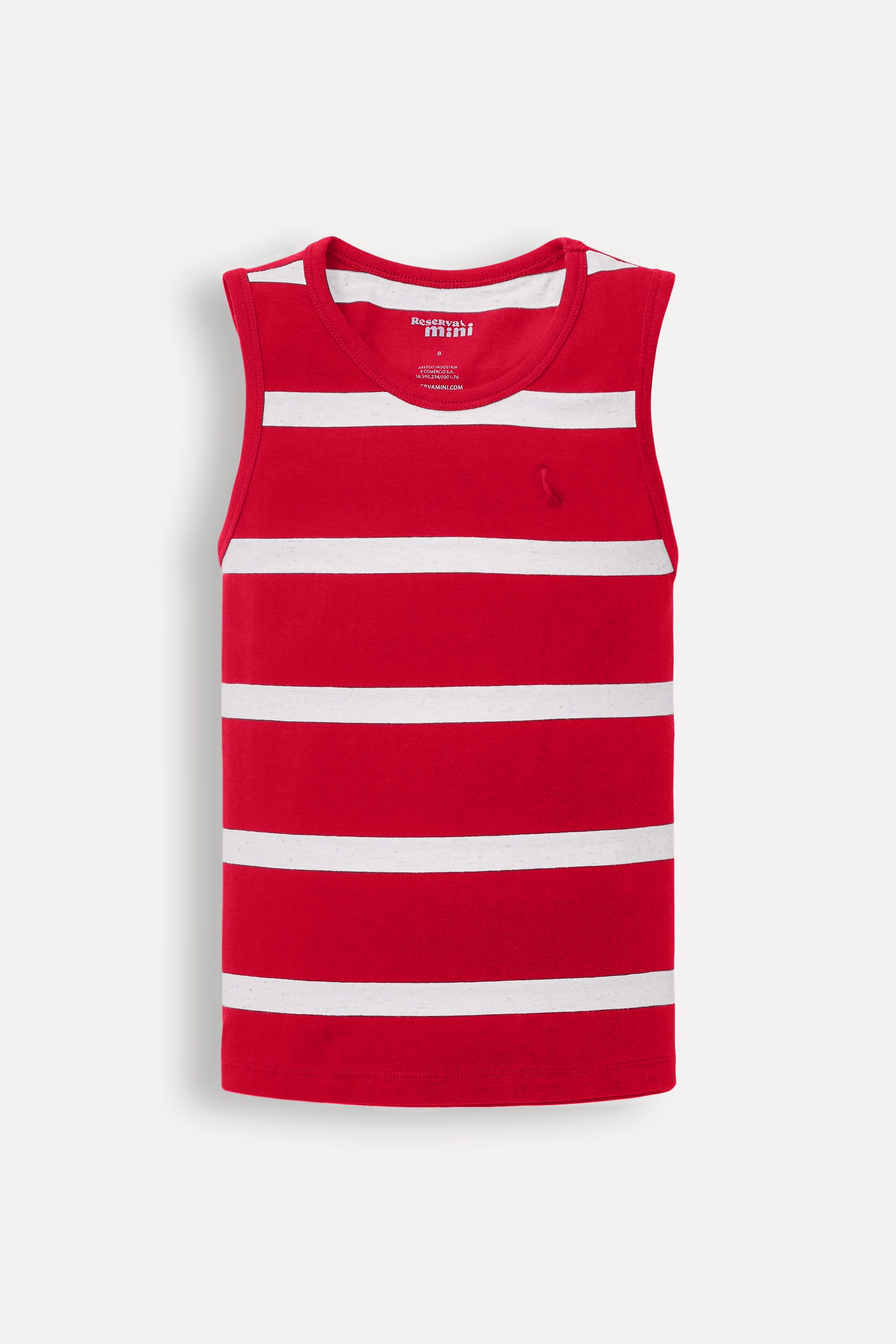 Regata da linha infantil Reserva Mini. A peça ganhou malha super confortável e não possui mangas, sendo perfeita para os dias de calor. As listras mais largas dão ao visual um ar clássico e moderninho ao mesmo tempo! Produzido eticamente no Brasil. Comprando esta peça, você complementa cinco pratos de comida através do nosso programa 1P=5P.