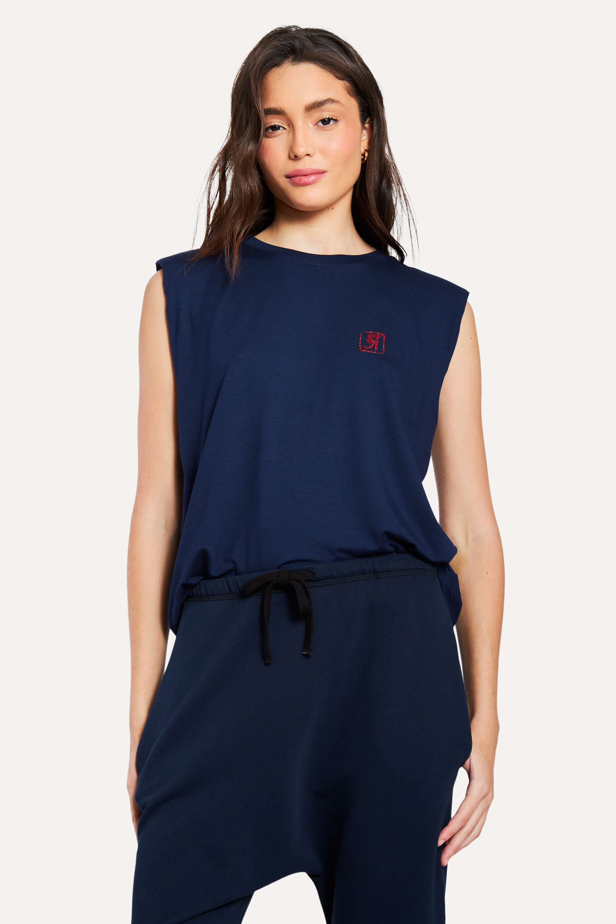 A Regata RVSA é uma peça de modelagem reta, solta ao corpo e sem manga, que garante maior liberdade de movimentos. Seu tecido leve e macio garante conforto e caimento perfeito. É uma peça ideal para o dia a dia. Regata Feminina Reversa produzida eticamente no Brasil. Comprando esta peça, você viabiliza cinco pratos de comida através do nosso programa 1P5P. A modelo mede 1,77 m e 79 cm de busto.