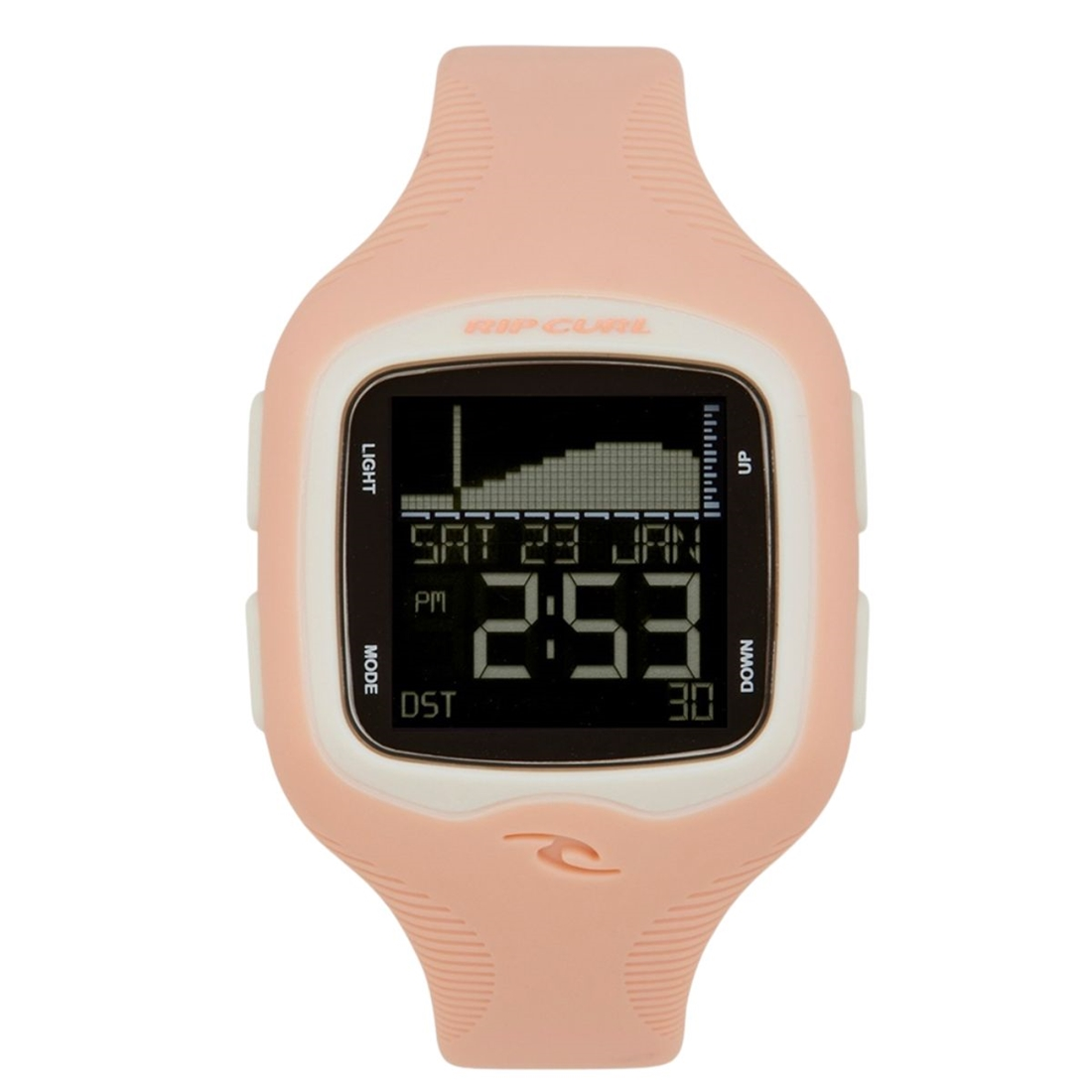 Relógio Rip Curl Kauai Tide Rosa<br /> <br /> Surf, Esporte e Estilo: o relógio de maré para a próxima geração. Com módulo de maré pré-programado, caixa reforçada com fibra de ABS moldada por injeção, lente de plástico com solda ultrassônica, pulseira em PU, fivela forjada de aço inoxidável e moldura injetada reforçada com fibra ABS.<br /> <br /> - Possui maré futura.<br /> - Dia, data, calendário, alarme e cronômetro.<br /> - Testado a 100m à prova d`água.<br /> - Leve, confortável, macio e super resistente.<br /> - Pulseira em PU.<br /> - Fecho de aço inoxidável para ambientes marinhos.<br /> <br /> Sobre a marca Rip Curl<br /> <br /> A história começa no ano de 1969, através dos sócios e amigos “Claw” Warbrick e Brian “Sing Ding” Singer, no fundo de uma garagem alugada produzindo pranchas. Com a demanda de pranchas crescendo, tiveram que procurar um espaço maior. Além das pranchas, começaram a fabricar roupas de borracha (wetsuits) para surfistas com intuito de deixá-los secos e quentes nas águas frias da Austrália.<br /> Com o tempo foram adquirindo técnicas e aperfeiçoando suas criações, passando a produzir roupas para esquiadores, para quem pratica Windsurf, snowboard e navegadores, ampliando seu mercado. Eles não pararam por aí, criaram linhas de produtos masculinos, femininos, linha de acessório e muito mais.<br /> <br /> Produto Original.