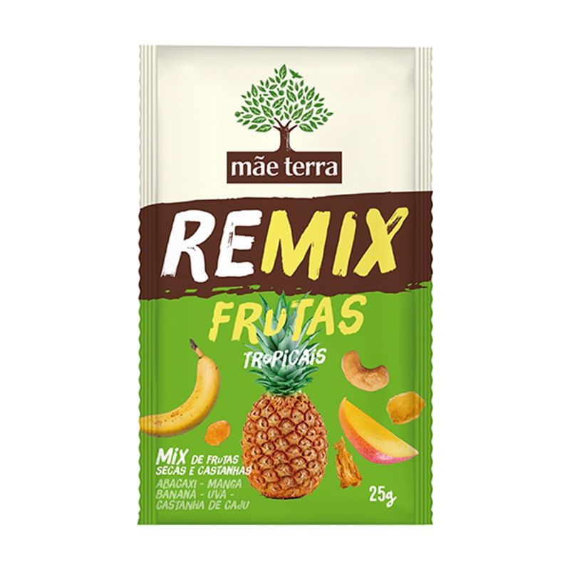 <p>Informações técnicas do produto:<br>O Remix Frutas Tropicais, da Mãe Terra é um delicioso mix de frutas secas e castanha de caju. A mistura inclui abacaxi, manga, banana e uva, não tem adição de açúcar, é 100% natural, com baixo teor de sódio, livre de gorduras trans e de aditivos alimentares, como conservantes artificiais.<br><br>Informações sobre alergênicos:<br>Contém castanha de caju. Pode conter castanha do Pará, amêndoa, avelã e nozes, aveia e seus derivados, soja e seus derivados, cevada e seus derivados, trigo e seus derivados e centeio.<br><br>Recomendação de consumo:<br>Pode ser consumido em qualquer momento do dia ou como opção nos lanches intermediários.<br><br>Por que escolher esse produto:<br>Com castanha de caju e frutas secas<br>Sem adição de açúcar<br>100% natural<br>Baixo teor de sódio<br>Livre de gorduras trans<br>Sem corantes e conservantes artificiais<br>Sobre a marca: <br>A Mãe Terra acredita que uma alimentação saudável, é composta por alimentos mais naturais e integrais, por isso os produtos são feitos com ingredientes que fazem bem para o corpo, não tendo adição de ingredientes artificiais. Atualmente é líder no segmento de alimentos naturais e orgânicos no Brasil.<br><br></p>