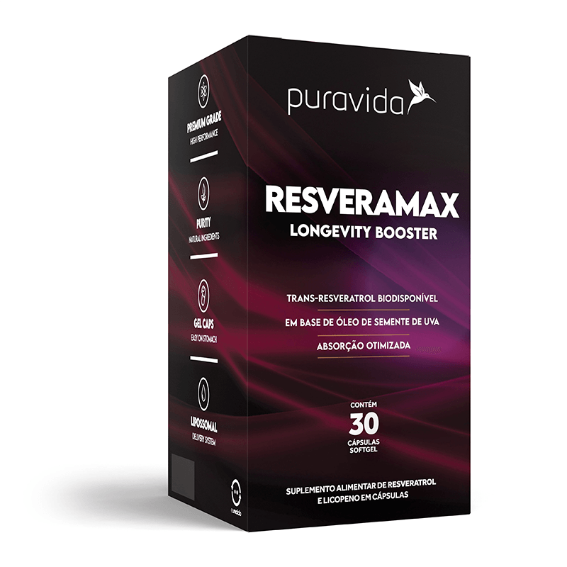 <p>O <strong>Resveramax, da Puravida</strong>, é um suplemento 100% natural elaborado com trans-resveratrol, óleo de semente de uva e licopeno, poderosos antioxidantes.</p> <h2>Sobre os ingredientes:</h2> <p><strong>Resveratrol e licopeno: </strong>são poderosos antioxidantes que contribuem na prevenção de diversas doenças degenerativas e do envelhecimento precoce das células.</p> <h2>Sugestão de consumo:</h2> <p>Consumir 1 cápsula por dia, junto das principais refeições ou conforme recomendação do médico ou nutricionista.</p> <h2>Motivos para escolher o produto:</h2> <ul> <li>Alta concentração de antioxidantes;</li> <li>Para energia física e excelência mental;</li> <li>Sem corantes, conservantes e aromatizantes artificiais;</li> </ul> <h2>A Marca</h2> <p><strong>Puravida </strong>é uma empresa que nasceu com o propósito de facilitar a prática de um estilo de vida orgânico. Acreditam que a qualidade daquilo que escolhemos comer, pode afetar o funcionamento do nosso corpo, funcionamento dos órgãos, humor, foco e mente. Através de suas vitaminas, suplementos, cosméticos, granolas, colágenos e outros produtos elaborados com ingredientes de altíssima qualidade podem contribuir com a sinergia do corpo.</p>