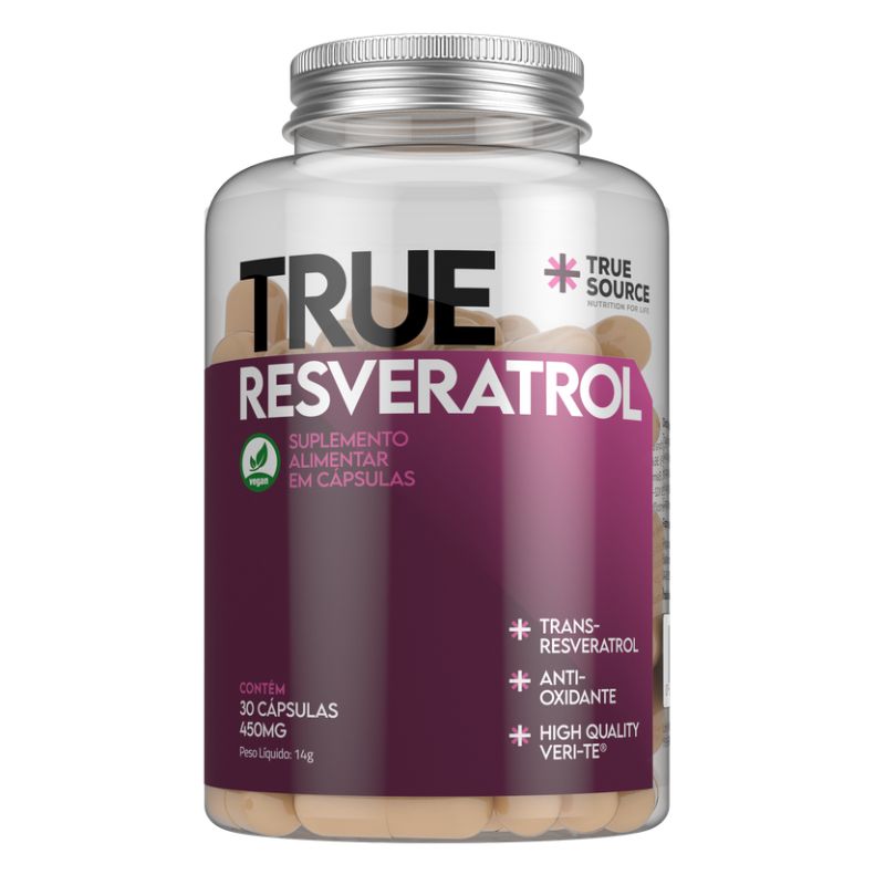 <p>O <strong>Resveratrol da True Source</strong> é um suplemento alimentar com altas concentrações de antioxidantes, compostos naturais que contribuem com a longevidade. Elaborado com trans resveratrol, óleo de semente de uva, licopeno e vitamina E.</p> <h2>Sobre os ingredientes:</h2> <p><strong>Trans resveratrol:</strong> composto natural com efeito antioxidante e anti-inflamatório, em sua forma mais ativa que é a trans resveratrol.</p> <p><strong>Licopeno:</strong> é um carotenoide que contribui para saúde e longevidade pelo seu poder antioxidante.</p> <h2>Sugestão de consumo:</h2> <p>Ingerir 1 cápsula ao dia longe das refeições (pelo menos 3 horas), ou de acordo com orientação de nutricionista ou médico.</p> <h2>Motivos para escolher o produto:</h2> <ul> <li> <p>Sem glúten;</p> </li> <li> <p>Possui a forma mais ativa do resveratrol; </p> </li> <li> <p>Enriquecido com vitamina E;</p> </li> <li> <p>Possui certificação Veri-Te®;</p> </li> <li> <p>100mg de proantocianidinas;</p> </li> <li> <p>Produto vegano;</p> </li> </ul> <h2>A Marca</h2> <p>A <strong>True Source</strong> é uma empresa movida pelo bem-estar, rendimento físico e pela natureza. Os produtos da True Source são elaborados com matéria-prima importada, ingredientes extraídos da natureza, proteínas limpas e sem aditivos, com isso a marca traz uma suplementação perfeita para sua dieta, com produtos de qualidade e sabor excelente. </p>