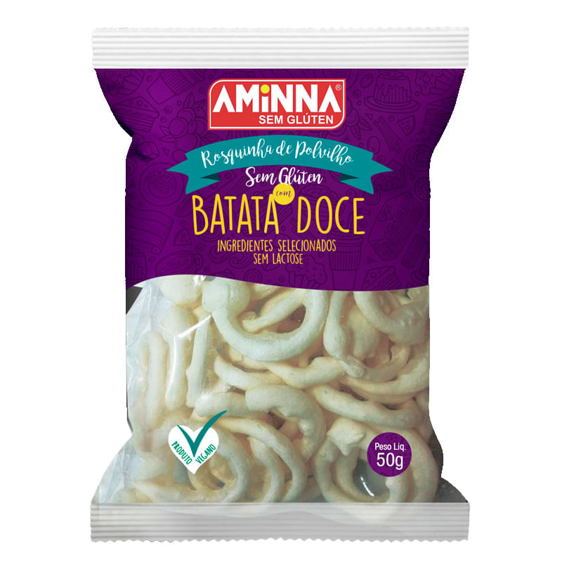 A Rosquinha Sem Glúten Batata Doce, da Aminna, 50g, é elaborada ingredientes selecionados, sem glúten e lactose, além disso, não contém ingredientes de origem animal, tornando-se uma opção para veganos e vegetarianos.
