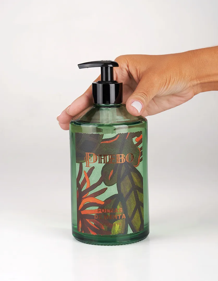 Inspirada nas tradicionais garrafadas de ervas do Pará, a linha Aromáticos destila o frescor vivo das plantas e ervas em combinações que exalam rusticidade e naturalidade. Folhas de Menta traz uma fragrância vibrante com notas cítricas e aromáticas, que despertam os sentidos com leveza e pureza. Sabonete Líquido Folhas de Menta e suas propriedades Com 95% de ingredientes de origem natural, o sabonete líquido é formulado com glicerina 100% de origem natural e tecnologia antiodor, que ajuda a neutralizar odores indesejados, prolongando a sensação de frescor. O frasco em vidro decorado em verde translúcido e a tampa de madeira personalizada com logo da Phebo, em relevo, trazem a rusticidade e a naturalidade das ervas aromáticas. A identidade olfativa é reproduzida em ilustrações botânicas, criando um universo visual único para a coleção. Vegano. Livres de corantes e parabenos. Conteúdo: 1x sabonete líquido 450ml.