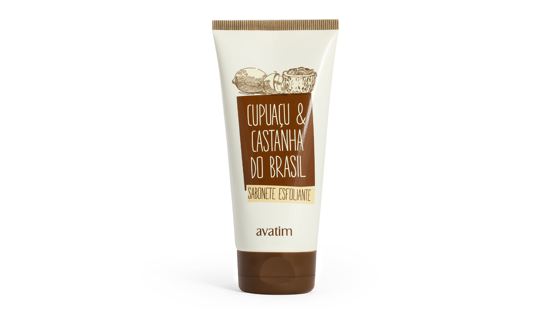 O sabonete líquido esfoliante Cupuaçu e Castanha do Brasil possui função de limpar e hidratar e ainda garante uma pele luminosa e renovada.