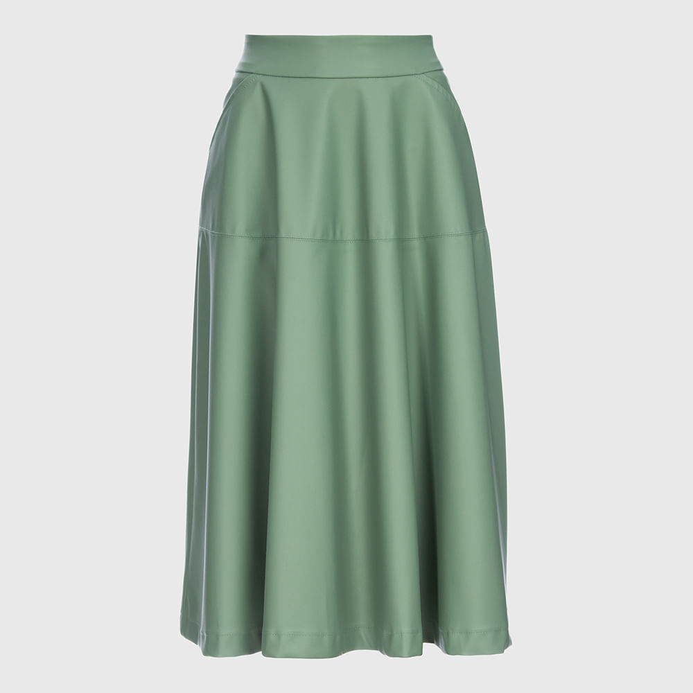 Saia de Couro Midi com Bolso - Verde