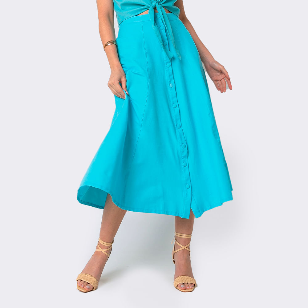 Saia feminina confeccionada em bengaline liso, um tecido confortável e com ótima resistência; Modelagem midi com comprimento abaixo dos joelhos; Modelo possui fechamento frontal com botões do mesmo tom e cintura alta; <br>A saia midi feminina é a peça ideal para montar um look refrescante e cheio de feminilidade. Invista em um mood romântico combinando com uma blusa cropped feminina e arremate com tamanco mule colorido; Para completar ainda mais o look, aposte nas bolsas tiracolo e acrescente um cinto de tom neutro na cintura; Referência de moda desde os anos 40, a saia midi feminina é a peça queridinha das mulheres que não abrem mão do conforto e da feminilidade em seu dia a dia; Invista nas saias lisas que são modelos atemporais, como a nossa Saia Feminina Midi com Botões;<br><br>.<br><br>Produto : Saia Feminina Midi com Botões Azul<br>Código : SAI2006AZU<br>Categoria: Saia<br>Cor: Azul<br>Tecido: Bengaline Liso<br>Composição: 20%poliamida 75%viscose 05%elastano<br>Comprimento: Longo<br>Peso: 300 g<br>Gênero: Feminino.<br>Marca: Vértice<br>.<br><br>Medidas.<br><br>P - Busto até 90 cm l Cintura até 71 cm l Quadril até 99 Cm.<br>M - Busto até 96 cm l Cintura até 77 cm l Quadril até 102 cm.<br>G - Busto até 102 cm l Cintura 83 cm l Quadril 111 cm.<br>GG - Busto 108 cm l Cintura até 89 cm l Quadril até 117 cm.<br>EGG - Busto até 114 cm l Cintura até 95 cm l Quadril até 123 cm.<br><br><br><br><br><br><br><br><br><br><br><br><br><br><br><br><br><br><br><br><br><br><br><br><br><br><br><br><br><br><br><br><br><br><br><br><br><br><br><br><br><br><br><br><br><br><br><br>