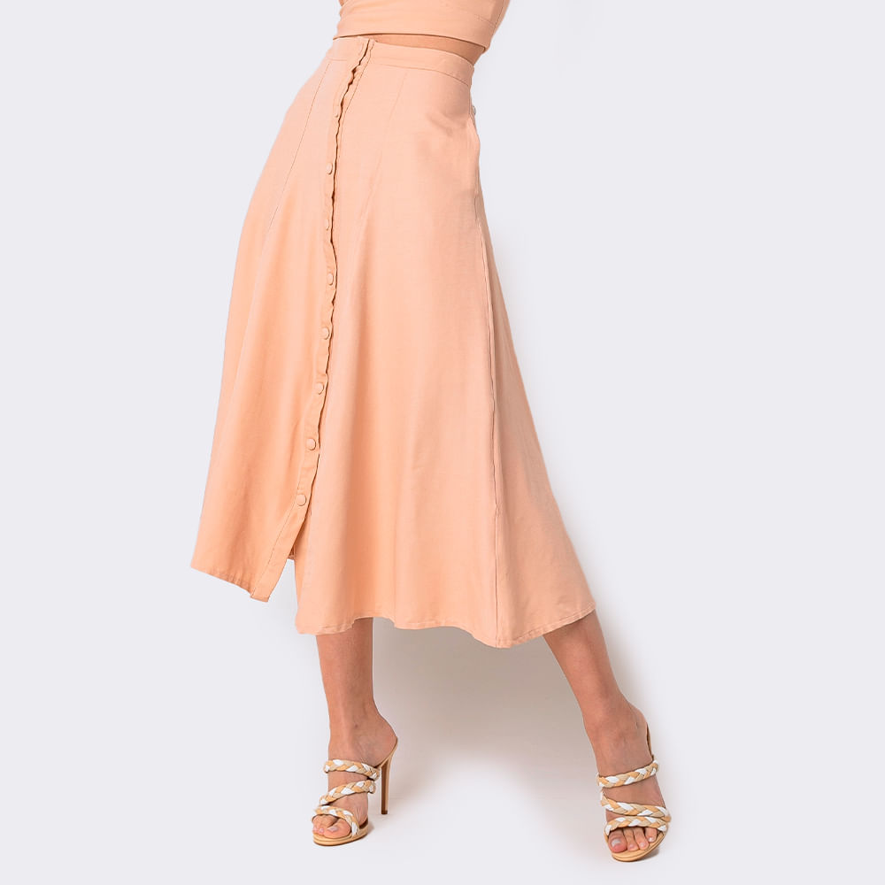 Saia feminina confeccionada em bengaline liso, um tecido confortável e com ótima resistência; Modelagem midi com comprimento abaixo dos joelhos; Modelo possui fechamento frontal com botões do mesmo tom e cintura alta; <br>A saia midi feminina é a peça ideal para montar um look refrescante e cheio de feminilidade. Invista em um mood romântico combinando com uma blusa cropped feminina e arremate com tamanco mule colorido; Para completar ainda mais o look, aposte nas bolsas tiracolo e acrescente um cinto de tom neutro na cintura; Referência de moda desde os anos 40, a saia midi feminina é a peça queridinha das mulheres que não abrem mão do conforto e da feminilidade em seu dia a dia; Invista nas saias lisas que são modelos atemporais, como a nossa Saia Feminina Midi com Botões;<br><br>.<br><br>Produto : Saia Feminina Midi com Botões Nude<br>Código : SAI2006NUD<br>Categoria: Saia<br>Cor: Nude<br>Tecido: Bengaline Liso<br>Composição: 20%poliamida 75%viscose 05%elastano<br>Comprimento: Longo<br>Peso: 300 g<br>Gênero: Feminino.<br>Marca: Vértice<br>.<br><br>Medidas.<br><br>P - Busto até 90 cm l Cintura até 71 cm l Quadril até 99 Cm.<br>M - Busto até 96 cm l Cintura até 77 cm l Quadril até 102 cm.<br>G - Busto até 102 cm l Cintura 83 cm l Quadril 111 cm.<br>GG - Busto 108 cm l Cintura até 89 cm l Quadril até 117 cm.<br>EGG - Busto até 114 cm l Cintura até 95 cm l Quadril até 123 cm.<br><br><br><br><br><br><br><br><br><br><br><br><br><br><br><br><br><br><br><br><br><br><br><br><br><br><br><br><br><br><br><br><br><br><br><br><br><br>