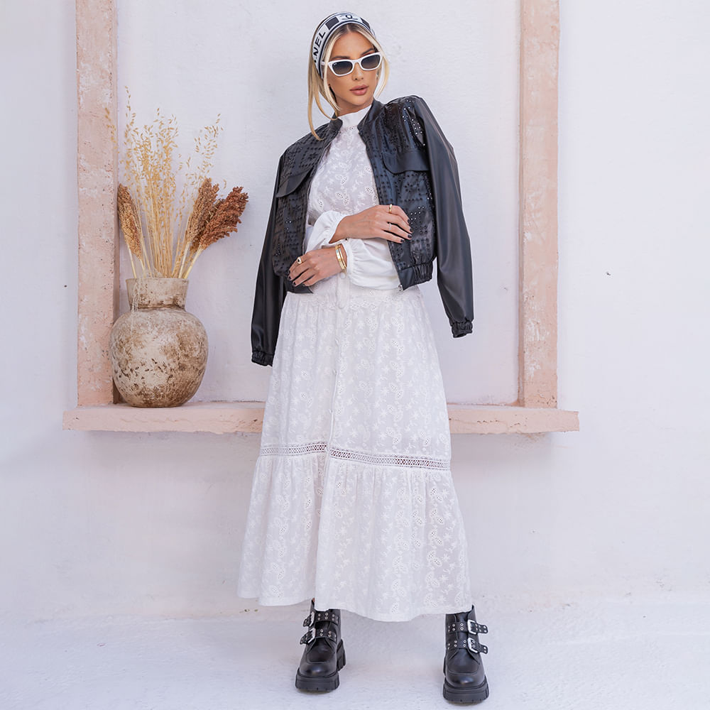 A Saia Laise Botões é uma peça encantadora que combina elegância e feminilidade de forma única; Feita em tecido de laise, que possui um padrão vazado e texturizado, essa saia apresenta detalhes especiais, conhecidos como aviamentos, que acrescentam um toque de sofisticação ao visual; Possui botões forrados, entremeios entre a saia e fechamento de ziper invisivel na lateral; A versatilidade da Saia Laise Botões permite que ela seja combinada de várias maneiras; Para uma ocasião mais formal, você pode combiná-la com uma blusa de laise salto alto, criando um look sofisticado; Para um estilo mais casual e descontraído, experimente combiná-la com uma camiseta básica e tênis ou rasteira; Uma tendência de moda relacionada à saia midi de laise com aviamentos é a valorização do estilo romântico e feminino, com um toque artesanal e detalhes especiais; Essa tendência busca resgatar elementos vintage e criar looks encantadores e cheios de personalidade; A saia midi de laise possui uma modelagem que valoriza a silhueta feminina; Pode ser uma saia mais ajustada na cintura e com pregas ou franzidos para criar volume e movimento; Essa modelagem adiciona um toque de elegância e romantismo ao look;<br><br>.<br><br>Produto : Saia Laise Botões Offwhite <br>Categoria: Saia<br>Cor: Offwhite <br>Tecido: Laise <br>Composição: 100% Algodão <br>Comprimento: Longo<br>Peso: 300 g<br>Gênero: Feminino<br>Marca: Vértice<br><br><br>Medidas da Modelo<br>Altura: 1,70 cm<br>Busto: 89 cm<br>Cintura: 65 cm<br>Quadril: 94 cm<br><br>A MODELO VESTE O TAMANHO P<br><br>Medidas.<br><br>P - Busto até 90 cm l Cintura até 71 cm l Quadril até 99 Cm.<br>M - Busto até 96 cm l Cintura até 77 cm l Quadril até 102 cm.<br>G - Busto até 102 cm l Cintura 83 cm l Quadril 111 cm.<br>GG - Busto 108 cm l Cintura até 89 cm l Quadril até 117 cm.<br>EGG - Busto até 114 cm l Cintura até 95 cm l Quadril até 123 cm.<br><br><br><br><br><br><br><br><br><br><br><br><br><br><br><br><br><br><br><br><br><br><br><br><br><br><br><br><br><br><br><br><br>