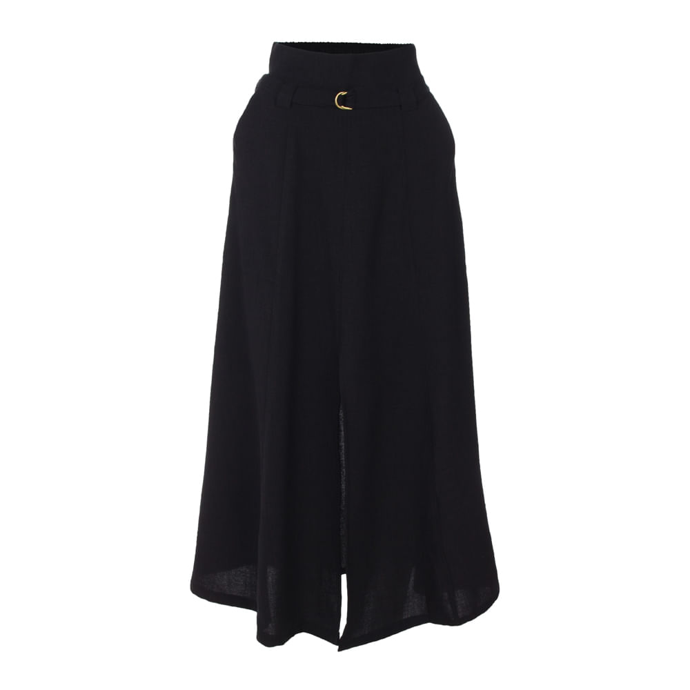 Saia Midi Alongada Ampla Preto e fenda frontal , muito estilosa e cheia de charme aquela peça que é um curinga no seu guarda roupa , pode ser usada para compor tanto looks casuais quanto para office look.A saia Midi Alongada cinto pode combinar a peça com camisas além de t- shirts sendo em produções monocromáticas ou não , com botas ou com o nosso Tamanco Mule Salto Alto Triangular o mesmo que nossa modelo está usando na foto para compor o look , sandália com salto bloco ,mule e até tênis para um visual mais despojado seja qual for a sua escolha você vai arrasar .<br>Poucas pessoas sabem que as saias surgiram na época da primeira guerra mundial, onde as jaquetas de couro se tornaram muito populares, elas eram usadas pelos aviadores para proteger do frio.