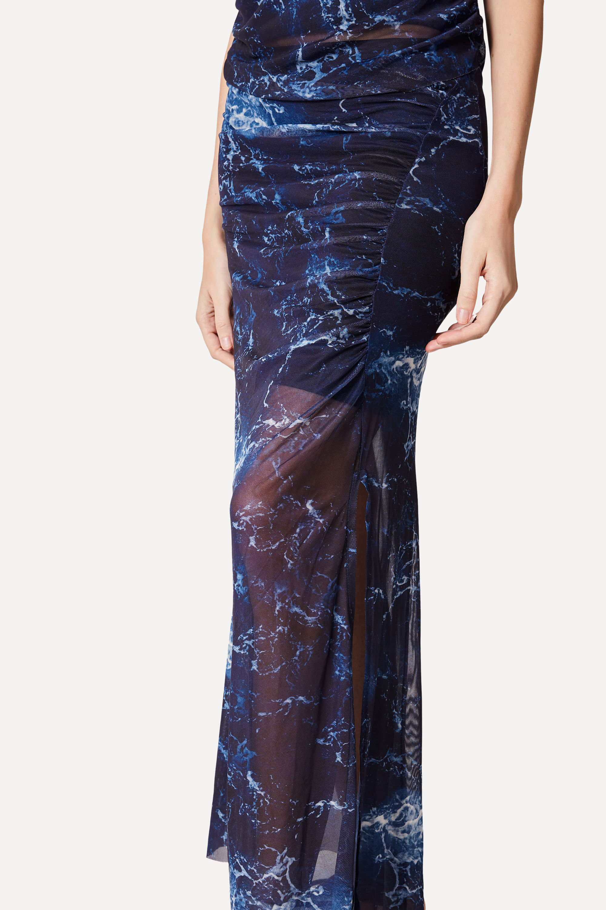 Saia Midi De Tule Estampa Mar