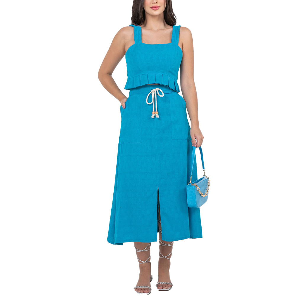 Saia feminina confeccionada em linho, um tecido leve e com ótima durabilidade; Possui modelagem midi com caimento em evasê e fenda frontal; O modelo conta com cós alto aplicado, cordão frontal e bolsos laterais; A saia midi é uma peça que traz feminilidade á qualquer produção e pode ser usada com blusas, camisas e croppeds; Para um visual de verão, invista em um cropped com detalhes bordados e arremate com sandálias de fibras naturais; O linho é o tecido favorito estação e estão nos looks das fashionistas antenadas nas últimas tendências, aposte na saia midi em linho para um visual fresh e casual!<br><br><br>.<br><br>Produto : Saia Midi Linho Azul<br>Código : SAI2206AZU<br>Categoria: Saia<br>Cor: Azul <br>Tecido: Linho<br>Composição: 11% viscose / 43% poliester / 15% linho / 31% algodão <br>Comprimento: Longo<br>Peso: 300 g<br>Gênero: Feminino<br>Marca: Vértice<br><br>Medidas.<br><br><br>P - Busto até 90 cm l Cintura até 71 cm l Quadril até 99 Cm.<br>M - Busto até 96 cm l Cintura até 77 cm l Quadril até 102 cm.<br>G - Busto até 102 cm l Cintura 83 cm l Quadril 111 cm.<br>GG - Busto 108 cm l Cintura até 89 cm l Quadril até 117 cm.<br>EGG - Busto até 114 cm l Cintura até 95 cm l Quadril até 123 cm.<br><br><br><br><br><br><br><br><br><br><br><br><br><br><br><br><br><br><br><br><br><br><br><br><br><br><br><br><br><br>