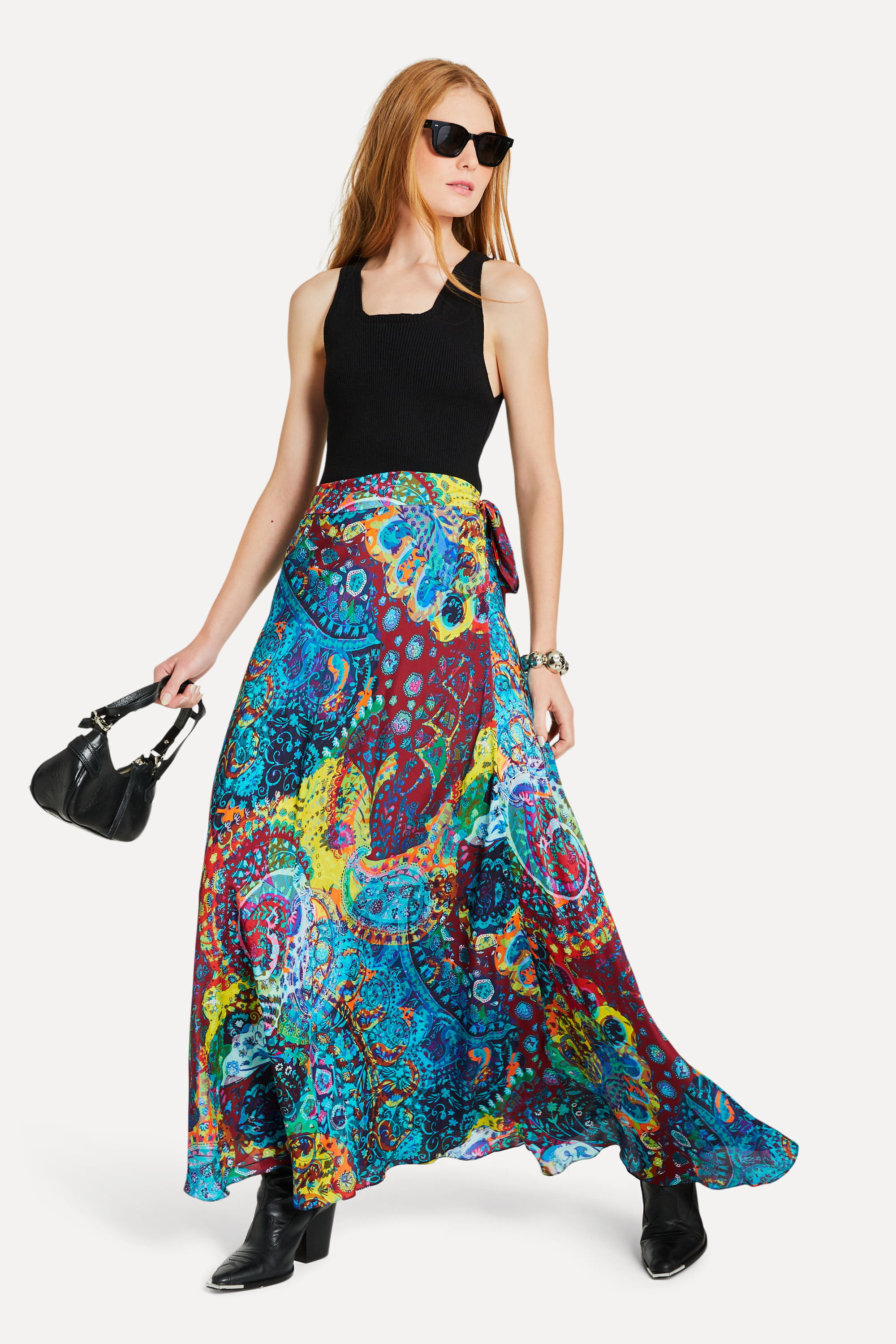 Apresentamos a Saia Transpasse Paisley, uma peça perfeita para o verão 24! Com uma modelagem confortável e um tecido leve, essa saia é ideal para os dias mais quentes. O estampado paisley traz um toque de estilo único, combinando perfeitamente com a estação. A sugestão de uso é criar composições com blusas básicas e sandálias confortáveis, garantindo um visual moderno e despojado. A modelo tem 1,77 de altura, 74 de busto e veste 36. Comprando esta peça, você viabiliza cinco pratos de comida através do nosso Programa 1P5P.