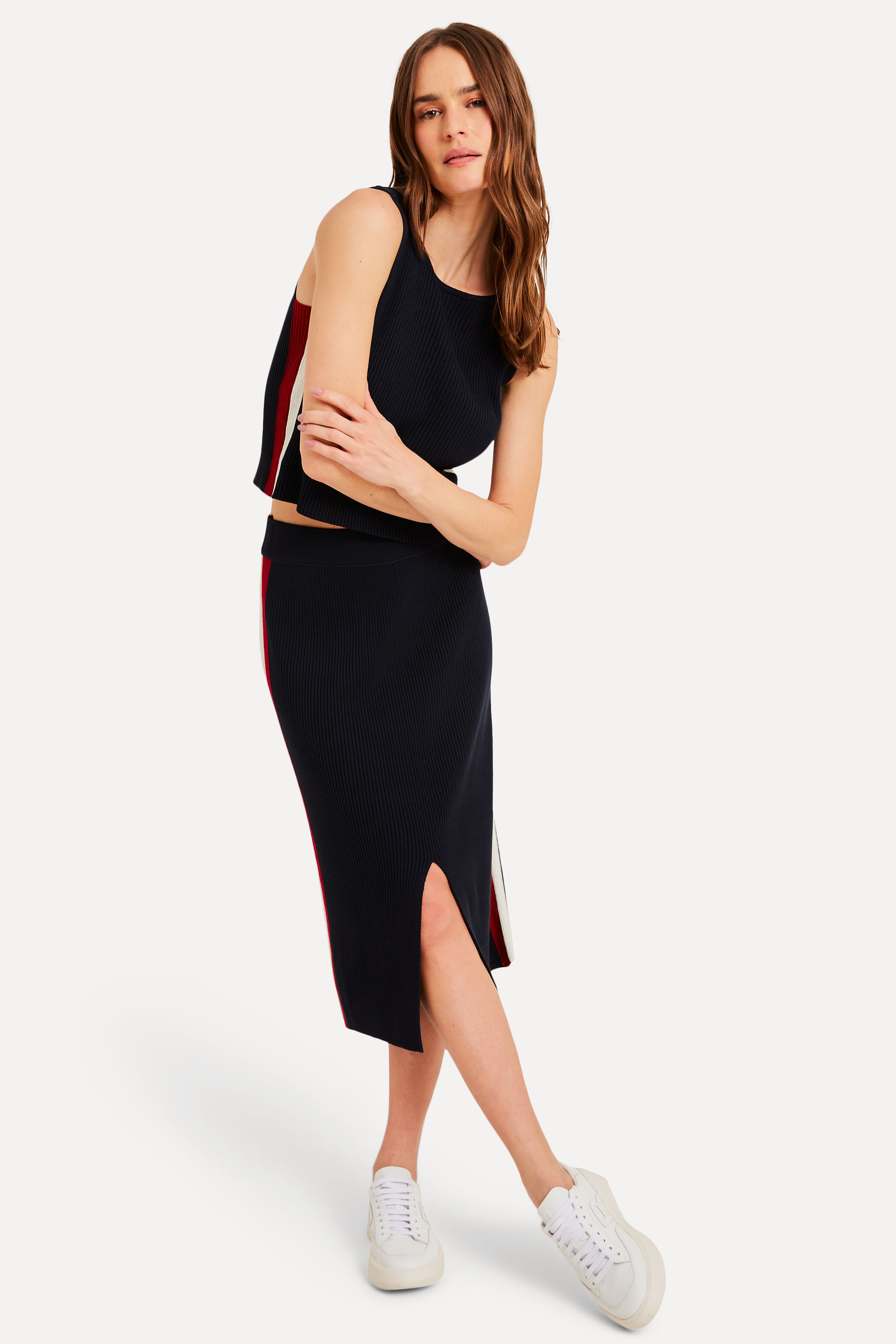 A Saia Tricot Marine da Reserva é perfeita para mulheres que buscam estilo e conforto em uma única peça. Com modelagem justa e listras laterais, ela é moderna e versátil, podendo ser usada em diversas ocasiões. O destaque fica por conta do tecido Pilar, que proporciona um toque macio e agradável ao vestir. Combine com a Blusa Fazendo Conjunto e arrase no visual contemporâneo. Seja para um passeio descontraído ou um evento mais formal, essa saia é a escolha certa. Invista em um look diferenciado com a qualidade e estilo que só a Reserva oferece. A modelo tem 1,77 de altura e 86 de busto. Comprando esta peça, você viabiliza cinco pratos de comida através do nosso Programa 1P5P. Produto produzido eticamente no Brasil.