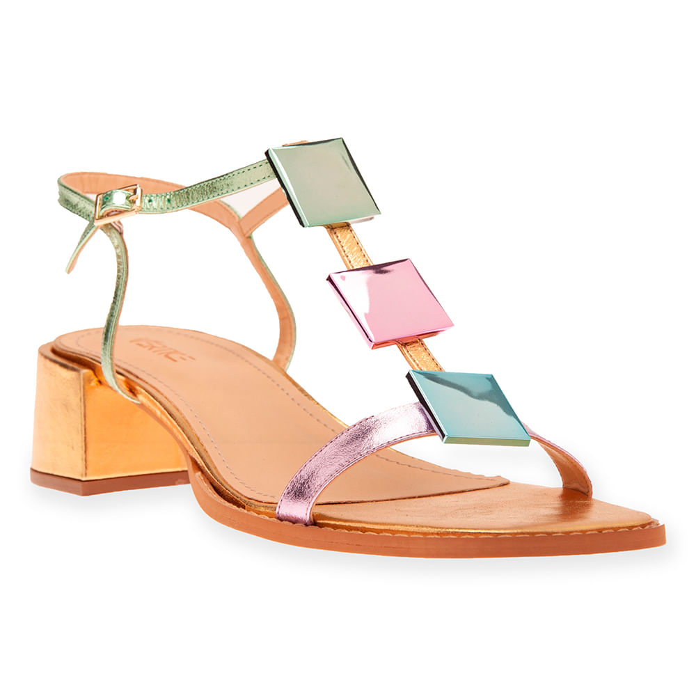 Sandália colorida confeccionada em material de couro e forro sintético; O modelo possui bico quadrado, tiras coloridas com aplicação de quadrados, palmilha macia com nome da marca e solado em micro, garantindo leveza ao calçado; Salto médio com 4,5 cm em formato bloco dourado, fechamento posterior por fivela; Uma sandália ideal para um have fun look para o seu dia a dia; Em um ambiente de trabalho, aposte com alfaiataria para equilibrar o seu visual entre o tradicional e criativo; Mas para um dia de lazer, vale a pena se jogar nas saias e vestidos fluidos; As sandálias com salto bloco são as queridinhas da temporada por serem muito mais confortáveis para caminhar; O detalhe de tiras coloridas chega para trazer leveza ao visual das antenadas na moda, aposte!<br><br><br>.<br><br>Produto: Sandália Bloco Multicolor Ouro<br>Categoria: Sandália<br>Tipo de Salto: Salto médio<br>Altura do Salto: 4,5 cm<br>Tipo de Bico: Quadrado<br>Material Externo: COURO<br>Solado: MICRO<br>Forma : Normal compre a que costuma usar<br>Peso: 0,735g <br>Cor: Ouro <br>Gênero: Feminino<br>Marca: Vértice<br><br><br><br><br><br><br><br><br><br><br><br><br><br><br><br><br><br>