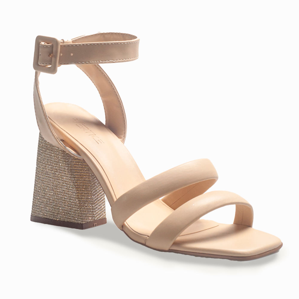 Sandália feminina confeccionada em material de napa e forro sintético; Modelo conta com salto alto grosso de 9,0 cm de altura e acabamento em brilhos prateados; O cabedal possui tiras duplas de largura média e fechamento por fivela lateral; Solado em microgel, que garante maior durabilidade ao calçado e estampa com o nome da marca na palmilha; A sandália feminina de salto alto com aplicação de brilhos é o match perfeito para todos os seus looks elegantes e sofisticados; Invista com um refiando vestido fluido e com detalhes, podendo ser babados, rendas ou mangas bufantes e arremate com uma bolsa transversal com brilhos prateados; Os brilhos são a verdadeira tendência do verão 2023 e você pode estar por dentro da tendência completando seu visual com a sandália com salto em brilho; As fashionistas adoram e essa sandália já se tornou a queridinha delas, aposte! <br><br>.<br><br>Produto : Sandália Bloco Tiras Largas Nude <br>Categoria: Sandalia<br>Tipo de Salto: Salto alto<br>Altura do Salto: 9,0cm<br>Tipo de Bico: Quadrado<br>Material Externo: TEXTIL<br>Solado: MICROGEL<br>Forma : Normal compre a que costuma usar<br>Peso: 0,480g<br>Cor: Nude <br>Gênero: Feminino<br>Marca: Vértice<br><br><br>