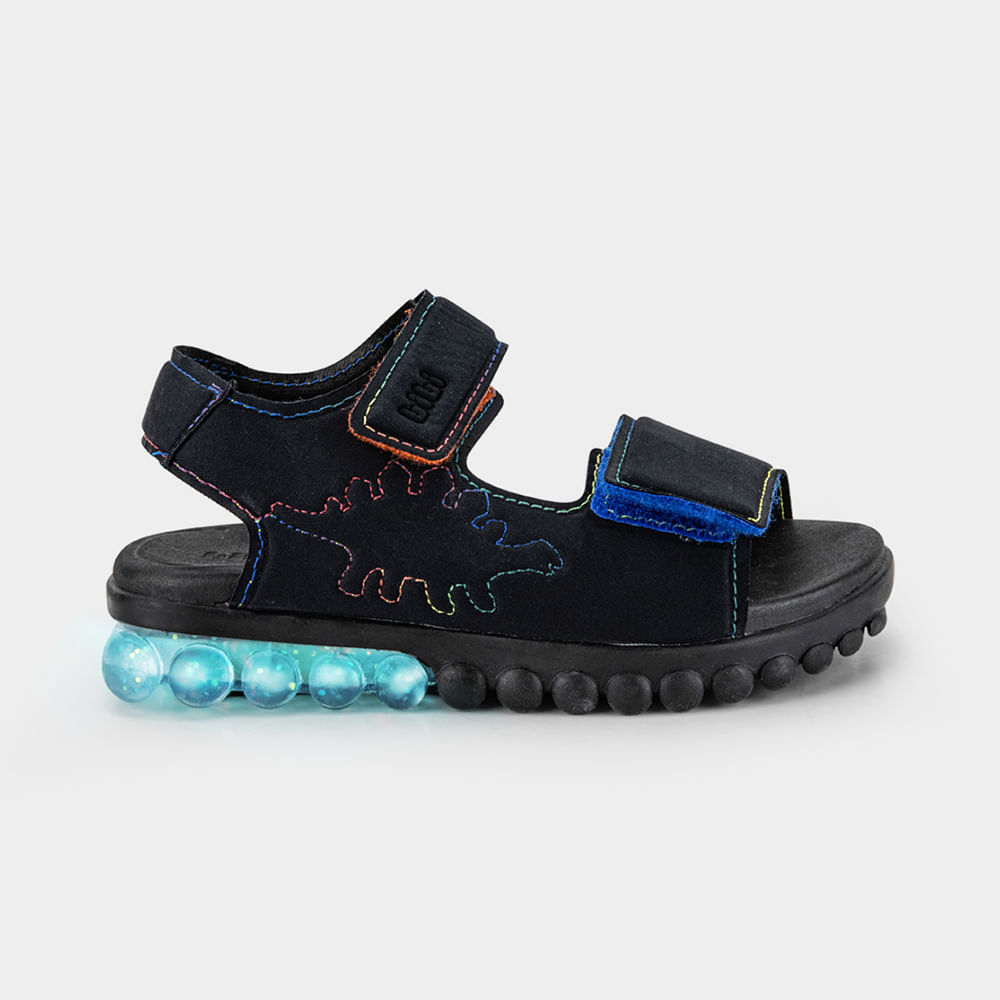 <div style="text-align: justify"> A sandália de luz infantil, super estilosa e divertida, em um modelo especial para os meninos. onfeccionada em elastano, ela conta com duas tiras de velcros coloridos, que facilitam o calce e geram praticidade para todas as ocasiões. Sua modelagem é super moderna e possui uma palmilha de EVA que gera maior conforto, leveza e flexibilidade. Os detalhes especiais do modelo são as costuras coloridas, destacando todo o contorno do modelo e o os diferentes desenhos de dinossauro nos dois pés. O solado segue com rolamentos que acompanham os movimentos dos pezinhos e vem com muitas luzinhas que piscam ao caminhar, proporcionando conforto e diversão o dia todo! </div>