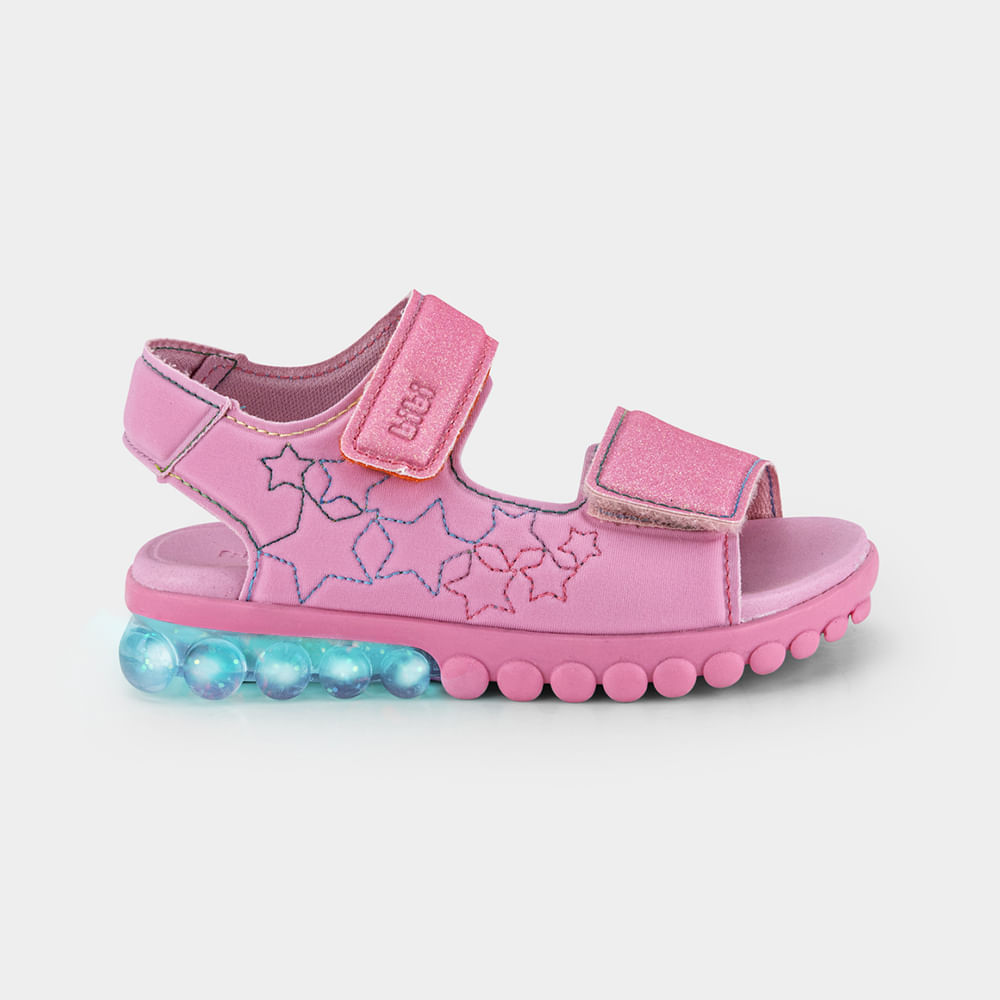 <div style="text-align: justify"> A sandália de luz infantil em um modelo especial para as meninas, super estilosa e divertida. Confeccionada em elastano, ela conta com duas tiras de velcros coloridos, que facilitam o calce e geram praticidade para todas as ocasiões. Sua modelagem é super moderna, a sandália para as meninas possui uma palmilha de EVA que proporciona maior conforto, leveza e flexibilidade. Os detalhes especiais do modelo são as costuras coloridas e os desenhos de estrelas que combinam perfeitamente com a estação. O solado segue com rolamentos que acompanham os movimentos dos pezinhos e vem com muitas luzinhas que piscam ao caminhar, proporcionando conforto e diversão o dia todo! </div>