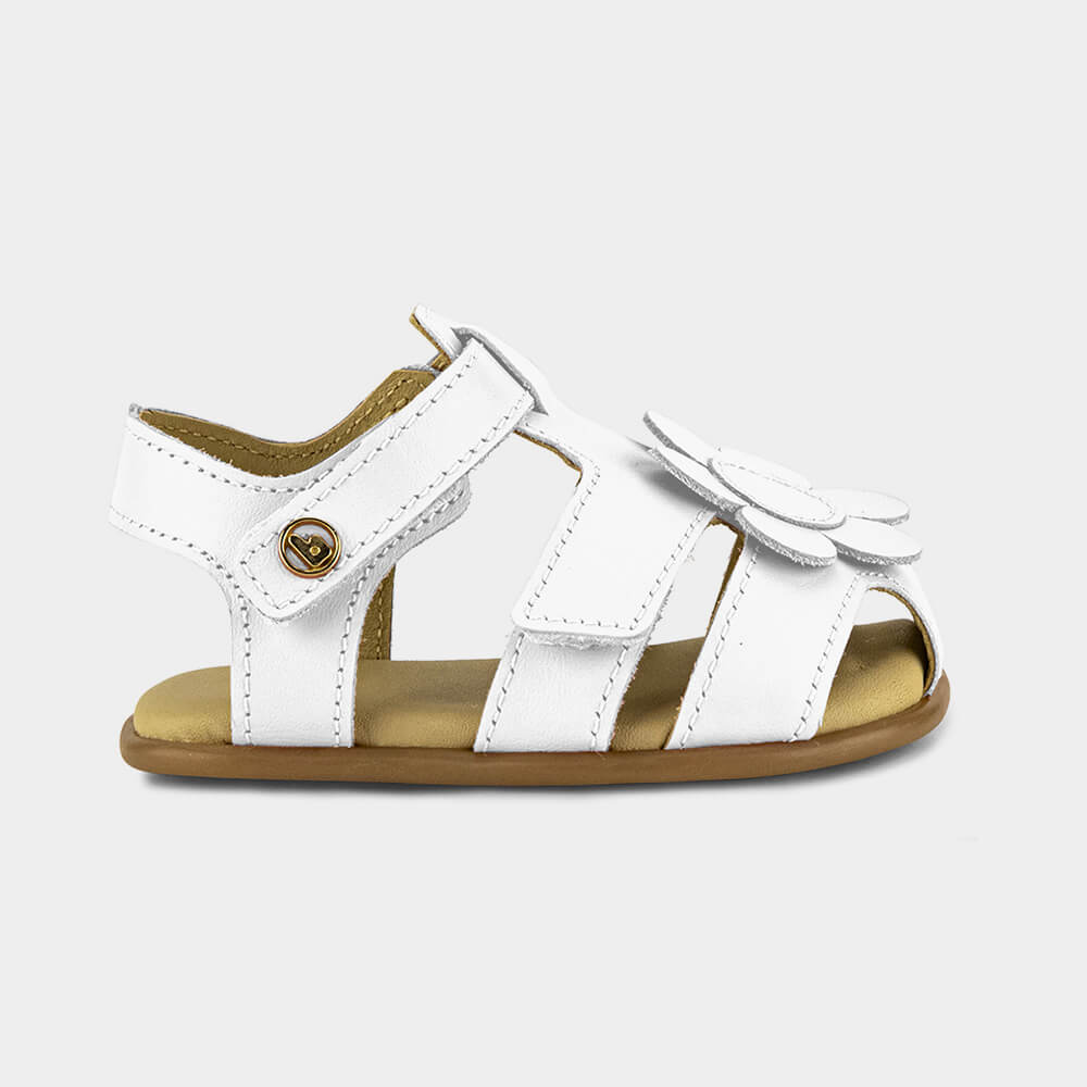 Apresentamos a sandália feminina para bebê confeccionada inteiramente em couro na cor branca! Ela é perfeita para todas as ocasiões. <br> Com um design clássico e um detalhe super fofo e delicado na aplicação de uma flor em couro, esta sandália combina estilo e funcionalidade. <br> Os dois fechamentos em tira permitem um ajuste fácil e seguro, protegendo os pezinhos do seu bebê e garantindo que eles se desenvolvam de maneira natural. Este modelo não é apenas elegante, mas também extremamente prático e seguro. <br> Escolha esta sandália infantil feminina para sua bebê e proporcione conforto, segurança e muito charme ao visual do sua pequena.