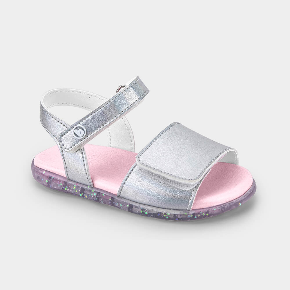 Sandália Infantil Bibi Baby Soft II Prata e Rosa 1188092