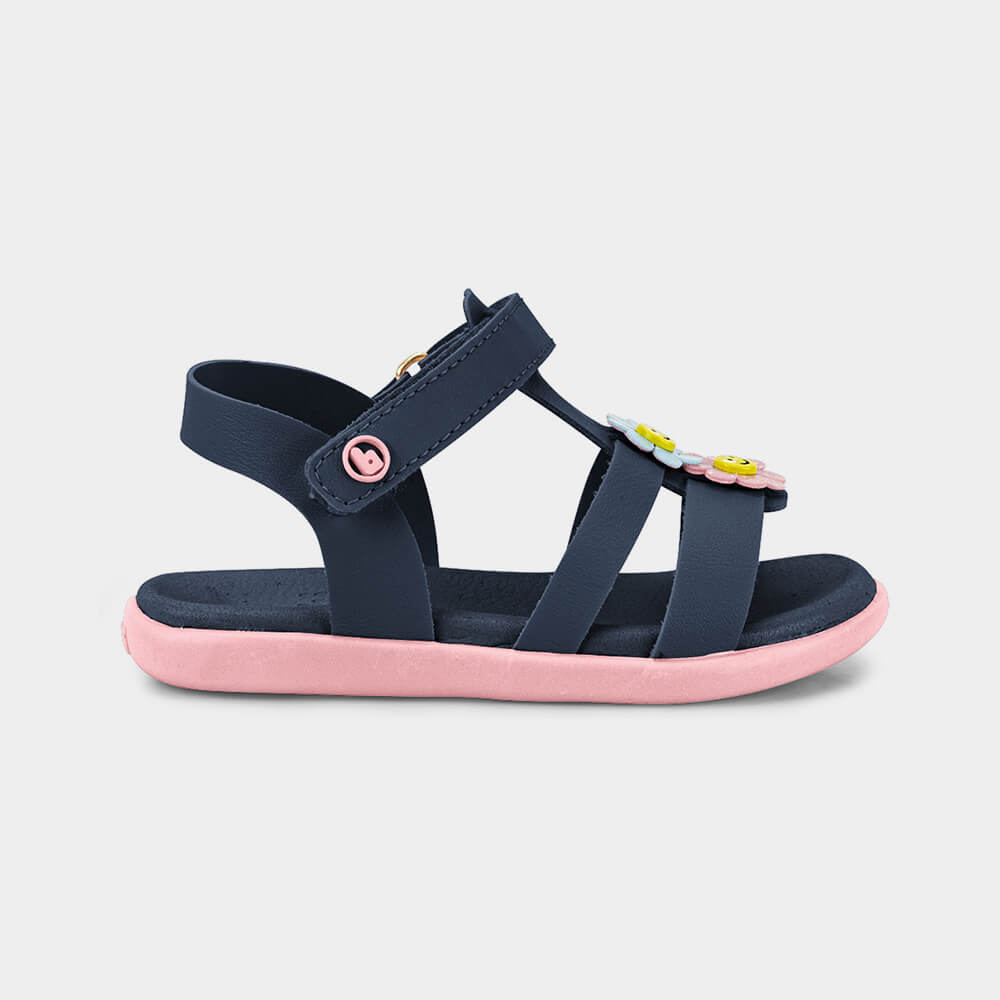 Encontre a sandália infantil especial para meninas na elegante cor azul marinho, perfeita para todas as ocasiões. <br> Com palmilha em EVA, ela garante maior naturalidade, conforto e flexibilidade, adaptando-se ao desenho do pé. Além disso, possui um prático fechamento em tira que facilita o calce. <br> A sola robusta oferece maior resistência e segurança, ideal para as grandes aventuras do dia a dia. <br> Combine estilo e praticidade com essa sandália feminina infantil decorada com delicadas florzinhas, oferecendo conforto e charme em qualquer momento.
