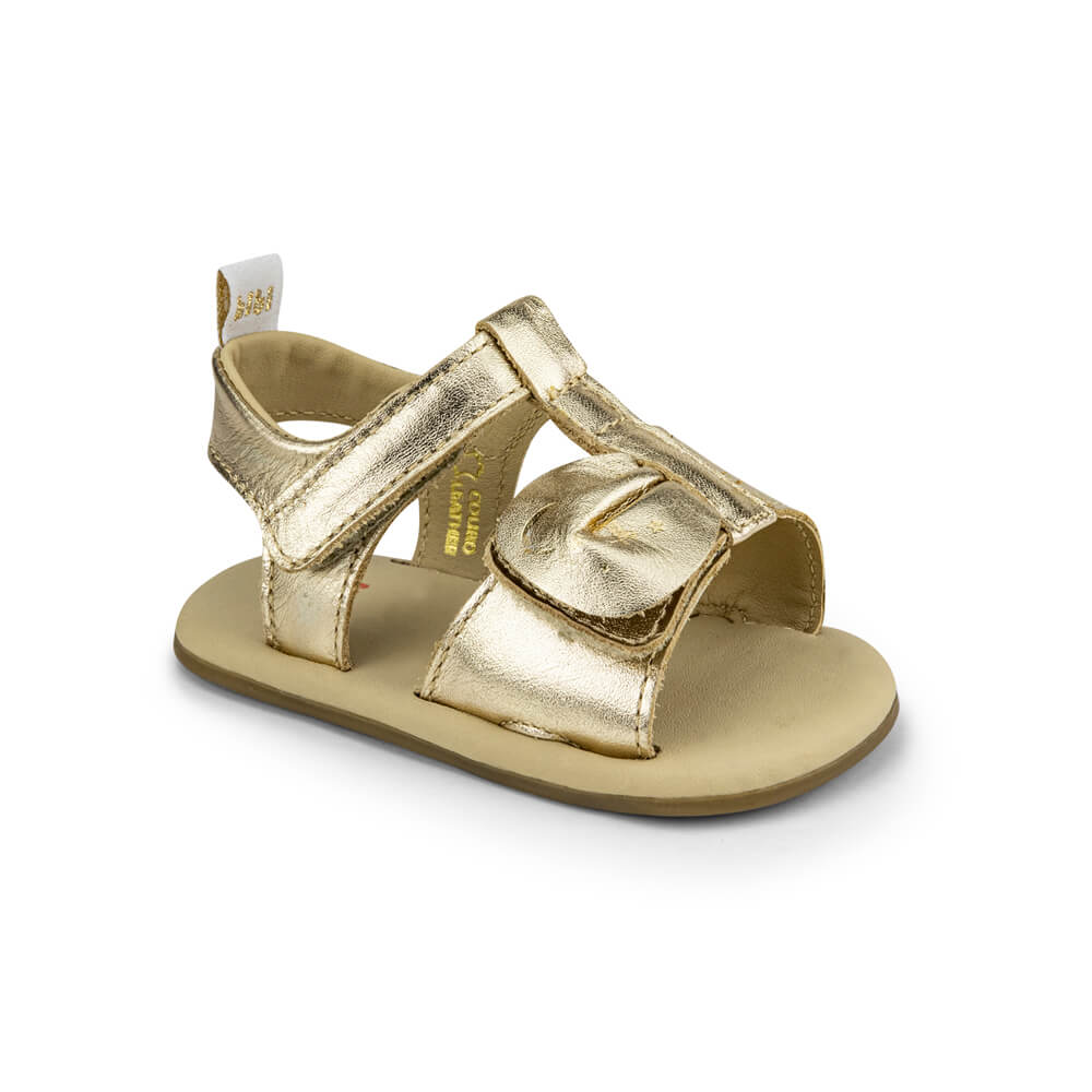 Sandália Infantil Bibi Dourada com Laço Estampado Afeto V