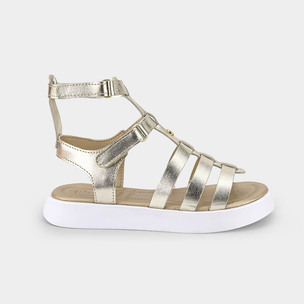Chegou na Bibi a sandália mais estilosa do momento! Apresentamos a união do conforto e macies, que está presente em todos os produtos Bibi. Possui o solado de TR, que é super flexível. Ainda, possui uma palmilha super fofa. Com design moderno e fashionista com tiras que facilitam o fechamento e envolvem o tornozelo para um melhor ajuste no pezinho. O modelo na cor Dourada, proporciona conforto e estilo para todas as meninas.