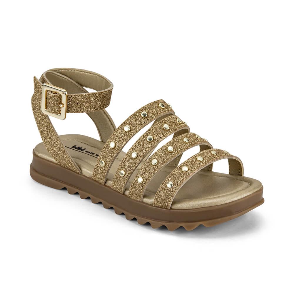 Sandália Infantil Bibi Tratorada Dourada com Tachas Flat Form II