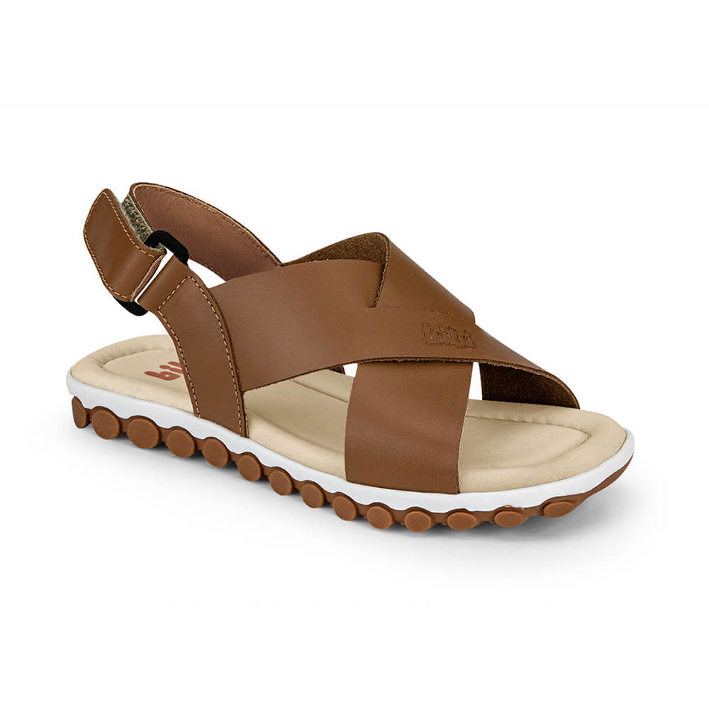 <div style="text-align: justify"> A sandália para os meninos conta com design mais clássico, ela é confeccionada toda em couro e possui palmilha com uma camada extra de espuma, que proporciona maior conforto e flexibilidade. Seu solado conta com rolamentos que acompanham os movimentos dos pezinhos, além de possuir tecnologia que auxilia a evitar derrapagens. O ajuste em velcro facilita o calce, a sandália tem design com tiras transpassadas mais largas que protegem e deixam o look mais estiloso. </div>