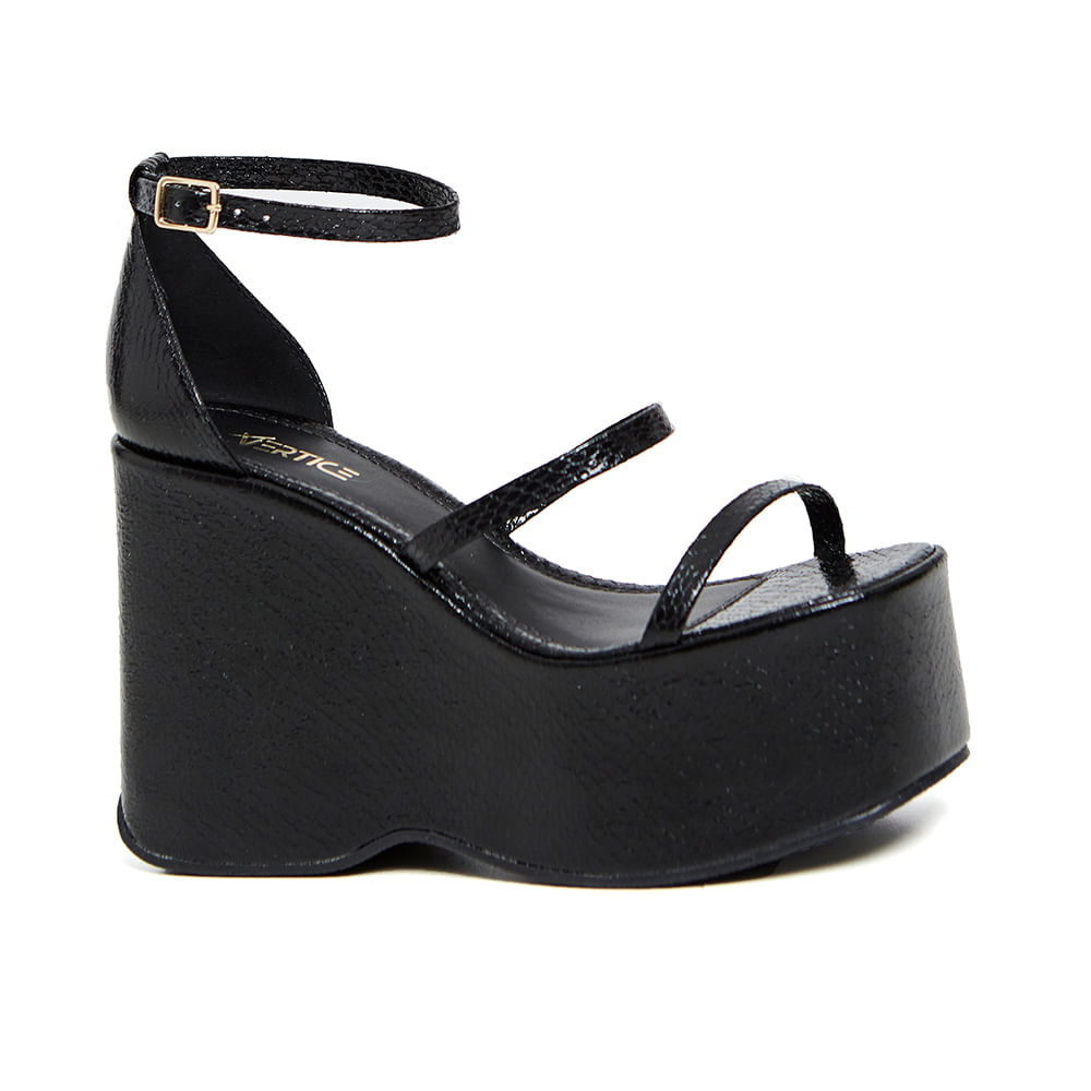 Sandália anabela confeccionada em material sintético metalizado e solado em TR, que garante maior estabilidade ao caminhar e muita resistência; Possui duas tiras médias no cabedal, fechamento lateral por fivelas, calcanhar fechado e salto plataforma inteiriço de 10 cm; Modelo possui detalhes de brilhos ao longo do calçado, deixando-o muito mais fashionista; A sandália anabela feminina com salto plataforma é um must have para quem ama estar com um look tendência; Combine a sandália plataforma com as peças mais fashionistas do seu guarda-roupa, indicamos os vestidos alongados com babados, mini saias e calças mom jeans com uma blusa colorida; Para arrematar, invista em bolsas de tons claros; A sandália anabela com salto plataforma pode ser o calçado mais fashionista da sua coleção, além de ser uma sandália super criativa e moderna para compor visuais perfeitos; As maiores fashion influencers estão amando apostar nelas para os seus looks!<br><br><br>.<br><br><br>Produto : Sandália Plataforma Tiras Preto <br>Categoria: Sandalia<br>Tipo de Salto: Salto alto<br>Altura do Salto: 10cm<br>Tipo de Bico: Quadrado<br>Material Externo: METALIZADO<br>Solado: TR<br>Forma : Normal compre a que costuma usar<br>Peso: 0,864g<br>Cor: Preto<br>Gênero: Feminino<br>Marca: Vértice<br><br><br>