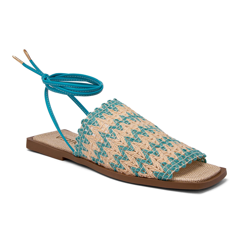 Sandália Rasteira Amarração Fibra Maleável Turquesa