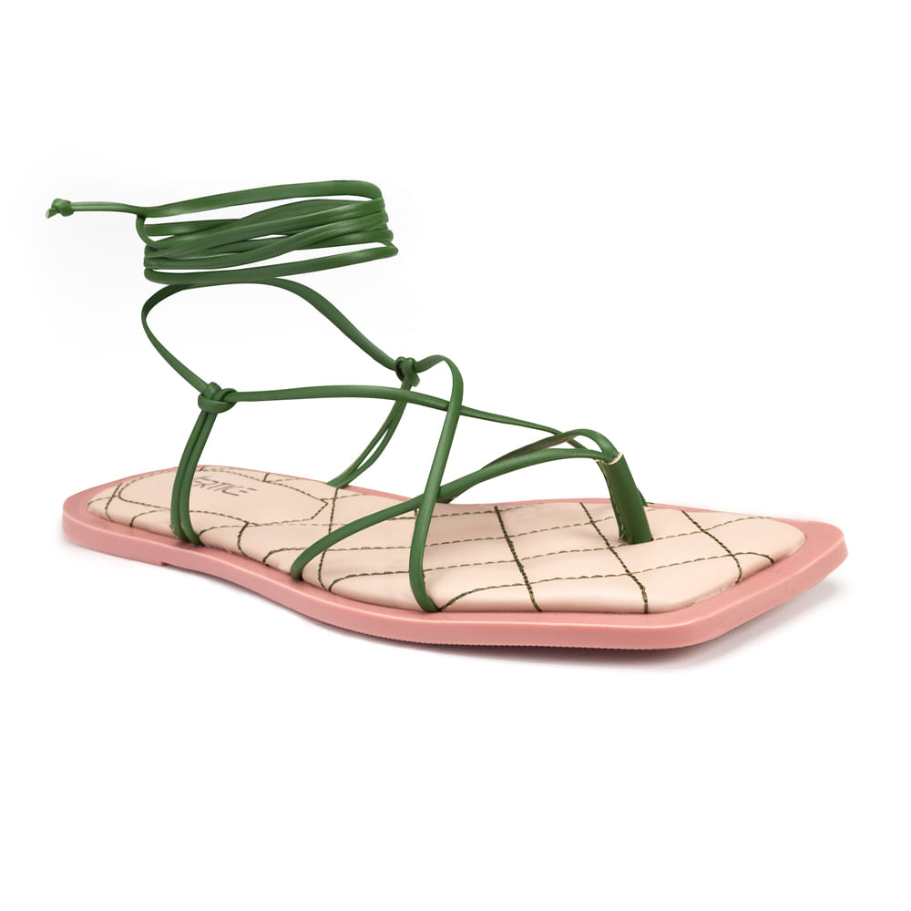 A Sandália Rasteira com Tiras Finas e Amarração Deixa o Visual Super Feminino e Valorizando o Look.. As Tiras Enroladas no Tornozelo Trazem Delicadeza e Feminilidade Às Composições.. Um Truque de Estilo com a Rasteira de Amarração Que Vem Dominado o Street Style, São As Tiras até a Canela, Criando X?s, Fazendo com Que a Amarração Seja o Ponto Alto do Look. Traz Um Ar Renovado Cheio de Personalidade e Conforto com a Palmilha Soft Esse Estilo de Sandália com Amarração Vai Bem com Saias e Vestidos.. Código: 5012968535OLI. Categoria: Rasteira. Tipo de Salto: Quadrado . Altura do Salto:0-2. Tipo de Bico:Quadrado . Material Externo: Sintético . Peso: 0,458g . Cor: Verde . Gênero: Feminino . Marca: Vértice.