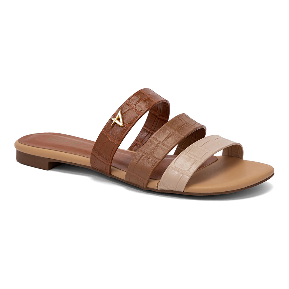 A Sandália Rasteira Três Tiras é perfeita para aqueles dias mais quentes ela traz muito chame e feminilidade as suas produções.<br>Sandália Rasteira Três Tiras é perfeita para aquelas ocasiões mais informais, como reuniões em família aquele happy hour, um cinema a rasteira é a melhor opção, pode ser usada com peças de tecidos leves que traz esse propósito de frescor, calças, shorts e saias de tecido ou jeans, t-shirts, regatas essas são ótimas combinações de looks, você tem conforto e estilo em um só calçado.<br>As rasteiras têm uma presença parece ser um pouco difusa em diferentes povos pelo mundo, na Europa e na África, como os romanos, gregos e egípcios eles usavam modelos de sandálias militares, chamada de caliga com as tiras presas nos tornozelos. No Brasil elas já existiam antes da chegada dos portugueses, mas só após o processo de colonização elas se transformaram um item de uso constante.<br><br>.<br>Produto : Sandália Rasteira Três Tiras <br>Código :11618455VAME<br>Categoria: Rasteira<br>Tipo de Salto: Sem salto <br>Altura do Salto: 1,2 cm<br>Tipo de Bico: Redondo <br>Material Externo: Croco <br>Peso: 280 g<br>Forma : Normal compre a sua numeração que costuma usar<br>Cor: Amendoa<br>Gênero: Feminino <br>Marca: Vértice