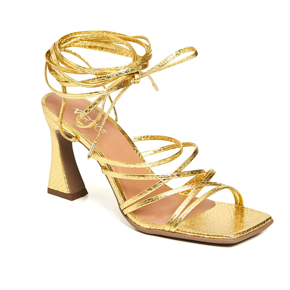 Sandália gladiadora feminina confeccionada em material de metalizado e forro sintético; Modelo conta com cabedal em tiras e tiras gladiadoras que sobem ao longo das pernas com fechamento por amarração; Possui bico quadrado, salto alto geométrico com 8,5 cm de altura e solado em microgel, que garante maior durabilidade ao calçado; As sandálias gladiadoras são perfeitas para combinar com peças de comprimento curto ou midi, deixando as tiras em evidência no look; Aposte em saias, vestidos ou calças croppeds para um visual super moderno e arremate com blusas coloridas e cheias de detalhes; A sandália gladiadora feminina traz um ar super moderno e pode ser o ponto-chave que seu look precisava; Sem dúvidas, todas as amantes de moda estão apostando nela para compor os melhores looks fashionistas; <br><br><br>.<br><br><br>Produto : Sandália Taça Amarração Ouro<br>Categoria: Sandalia<br>Tipo de Salto: Salto alto<br>Altura do Salto: 8,5 cm <br>Tipo de Bico: Quadrado<br>Material Externo: METALIZADO<br>Solado: MICROGEL<br>Forma : Normal compre a que costuma usar<br>Peso: 0,364g<br>Cor: Ouro<br>Gênero: Feminino<br>Marca: Vértice<br><br> <br>