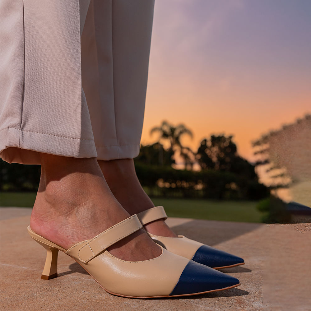 Scarpin Mule Com Salto Médio Bico Fino Creme