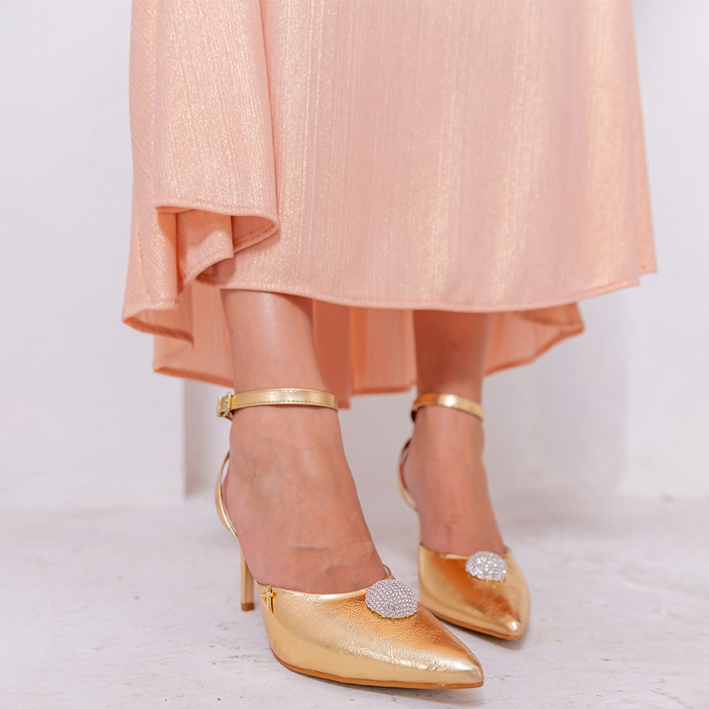 O ponto central desse scarpin é o globo de strass cuidadosamente posicionado, muitas vezes na região da ponta do calçado; O strass, formado por cristais lapidados ou vidro sintético, reflete a luz de maneira intensa, criando um efeito de brilho extraordinário; A combinação do salto fino com o globo de strass cria um contraste visual interessante entre a silhueta elegante do calçado e o brilho exuberante do strass; Isso faz com que o scarpin seja uma opção versátil, capaz de complementar tanto visuais sofisticados, como vestidos de gala ou trajes formais, quanto visuais mais modernos, como terninhos ou conjuntos de saia e blusa; O scarpin de salto fino com globo de strass é uma tendência que une a elegância do scarpin com o brilho intenso do strass; Sua presença marcante e luxuosa o torna um calçado perfeito para mulheres que desejam um toque de glamour em ocasiões especiais, destacando-se por sua combinação de sofisticação clássica e elementos contemporâneos; <br>.<br><br>Produto: Scarpin Salto Fino com Globo de Strass Ouro <br>Categoria: Scarpin <br>Altura do Salto: Salto Fino<br>Altura do Salto: 9cm<br>Tipo de Bico: Folha<br>Material Externo: SINTÉTICO REFLEXO<br>Solado: COUROPLAC<br>Forro: SINTÉTICO<br>Forma: Normal, compre a numeração que costuma utilizar<br>Peso: 0,418g<br>Cor: Ouro <br>Gênero: Feminino.<br><br><br><br><br><br><br><br><br><br><br><br><br><br><br><br><br><br><br>